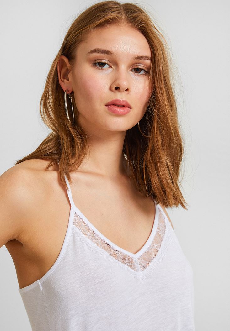 Dantel Detayli Keten Bluz modeli ince askilari, derin V yaka kesimi ve dökümlü durusu ile kombinlerinizde severek kullanacaginiz parçalardan birisi olacak. Bluz modelinin yaka kisminda kullanilan dantel biye detay tasarima oldukça hos ve enerjik bir hava kazandiriyor. Keten ve viskon karisimi dokusu ile konforlu bir kullanim hissi sunan bluz modeli, bu dokular sayesinde serin tutma özelligi ve nem emicilik saglayarak kendinizi günün her aninda rahat ve özgür hissetmenize yardimci oluyor. Bluz modelinin sirt dekoltesini pencerelere ayiran dantel serit detay da tasarima hos bir zarafet kazandiriyor. OXXO'nun zarif tasarim detaylari ile ön plana çikardigi bluz modelleri arasinda yer alan parça ile kendinizi her zaman sik hissedeceksiniz.