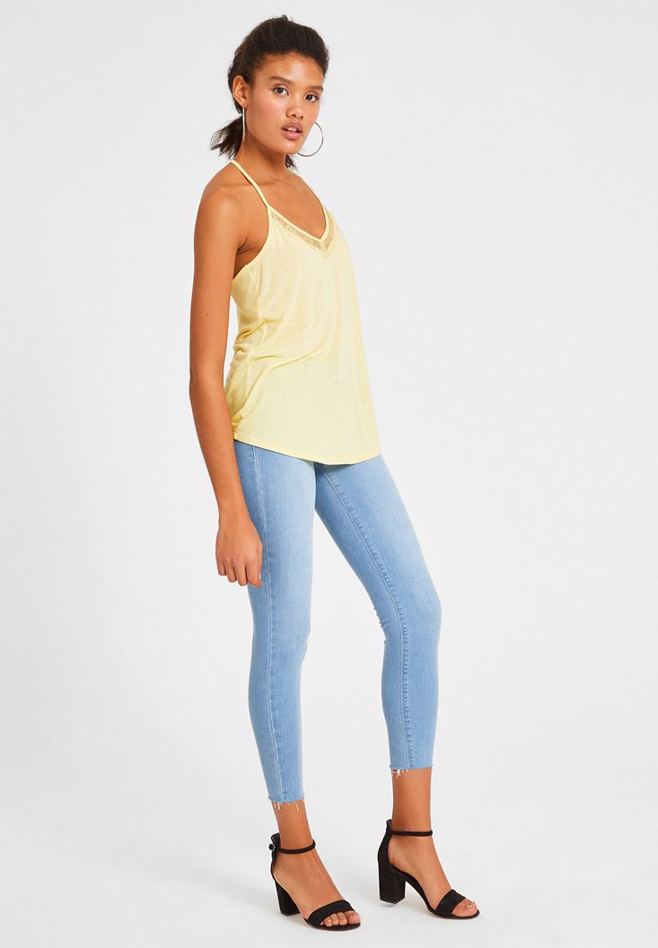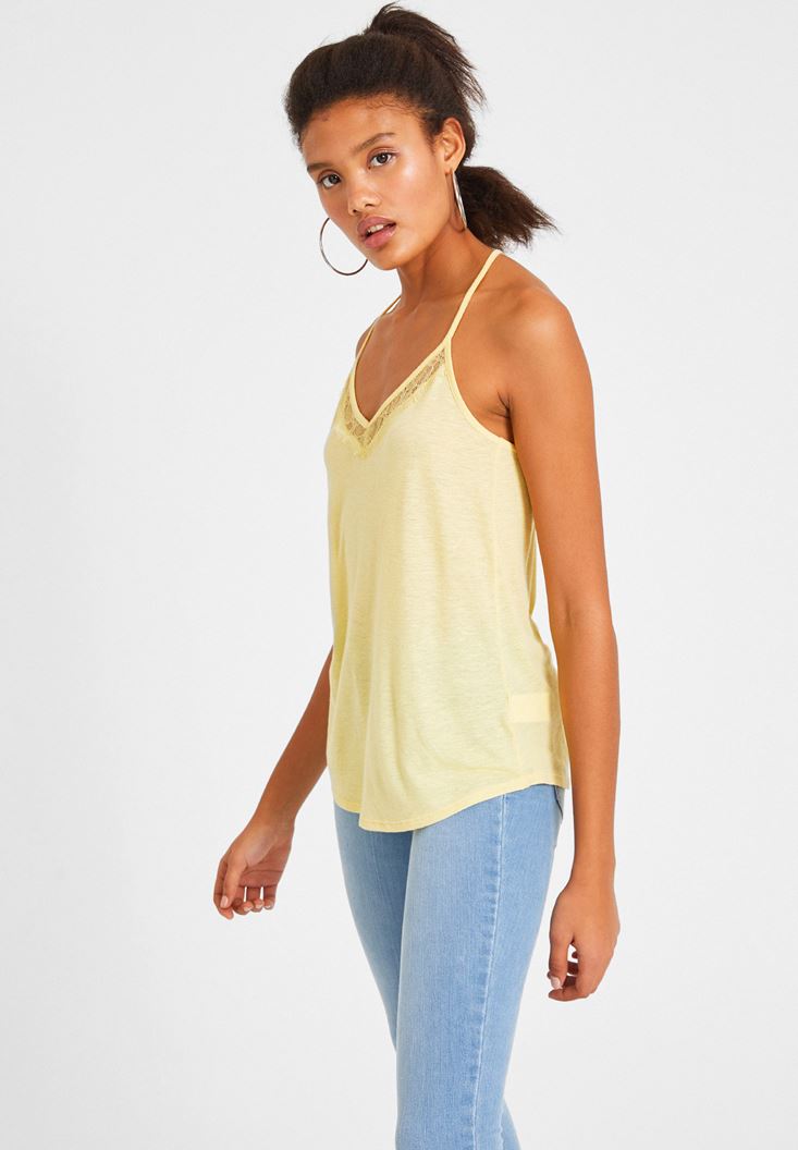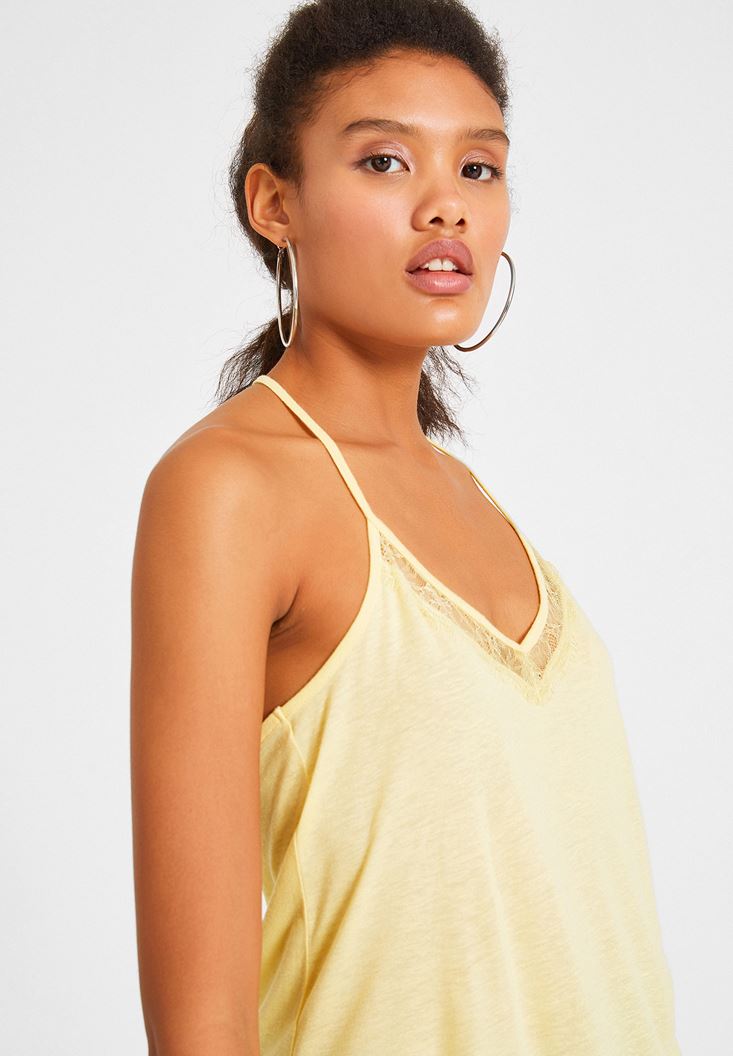 • Bayan Sarı Dantel Detaylı Keten Bluz