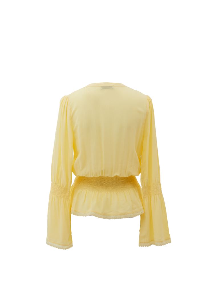 • Bayan Sarı Dantel Detaylı Kruvaze Bluz