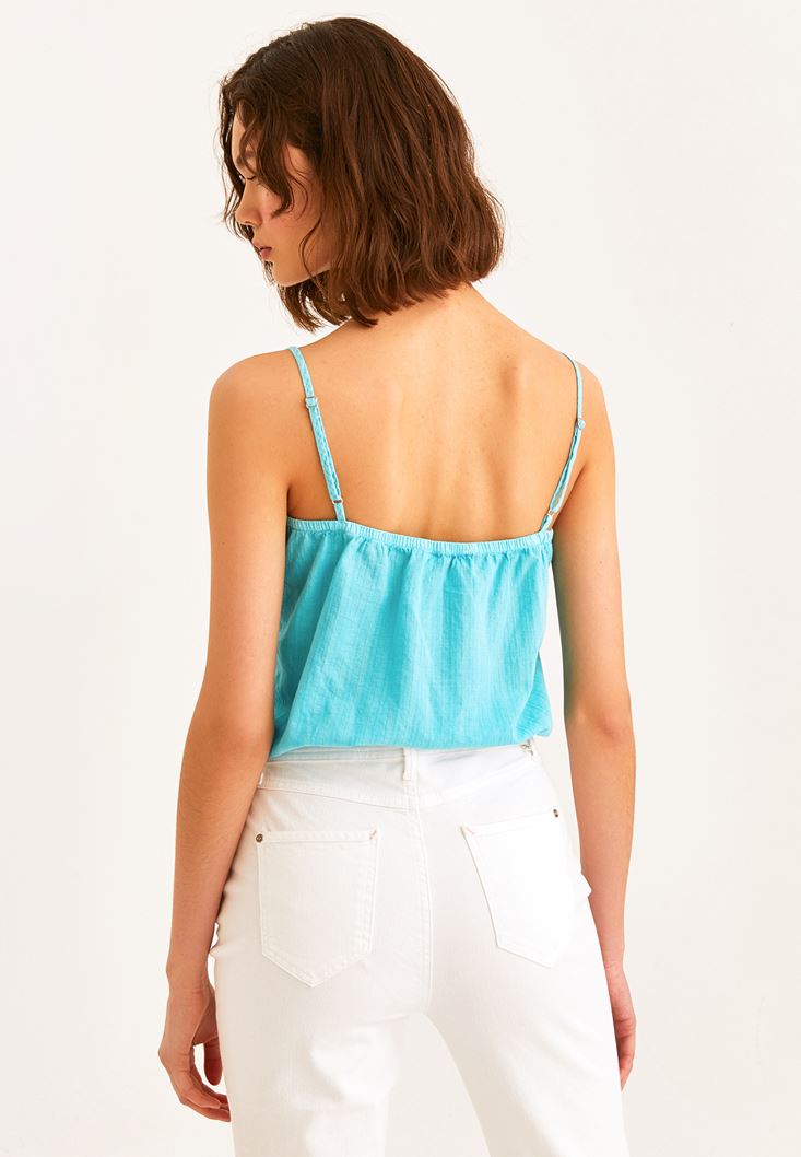 Dantel Detaylı Kruvaze Yaka Atlet modeli, pamuk içerikli hoş dokusu ve çekici görünümü ile Oxxo'da sizlerle buluşuyor. Kadın atlet modeli, kruvaze yakası üzerinde bulunan dantel detayları ile oldukça dikkat çekiyor. Kruvaze atlet modelini skinny jeanlerle veya mini eteklerle bir araya getirebilirsiniz. Topuklu ayakkabılarla veya terliklerle oluşturacağınız şık kombinlere kadın bluz modelini dahil edebilirsiniz. Oxxo'nun göz alıcı ayrıntılarla ve çekici detaylarla sizlere sunduğu kadın atlet modelleri ile her ortamda tarzınızı ön plana çıkarabilirsiniz.