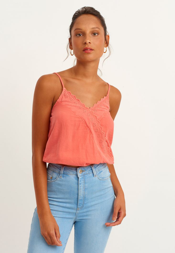 Pembe Dantel Detaylı Kruvaze Yaka Atlet