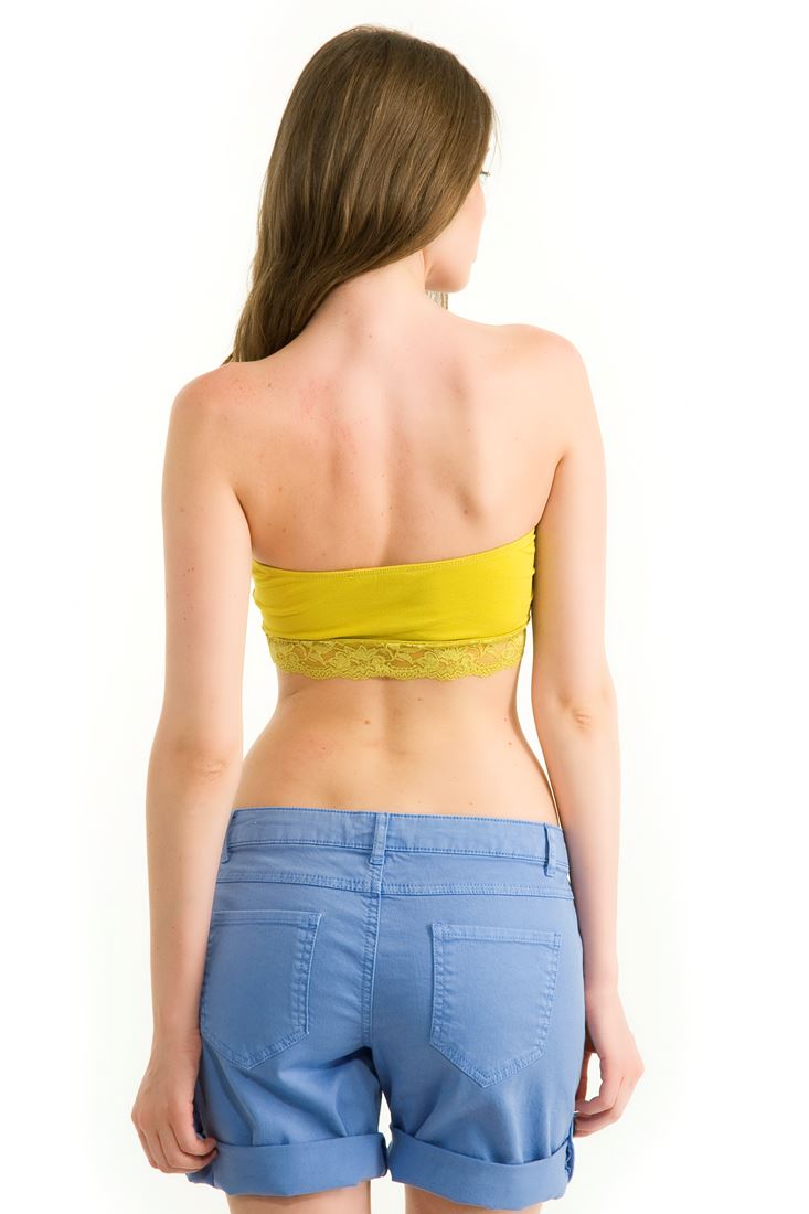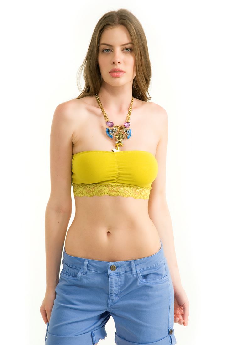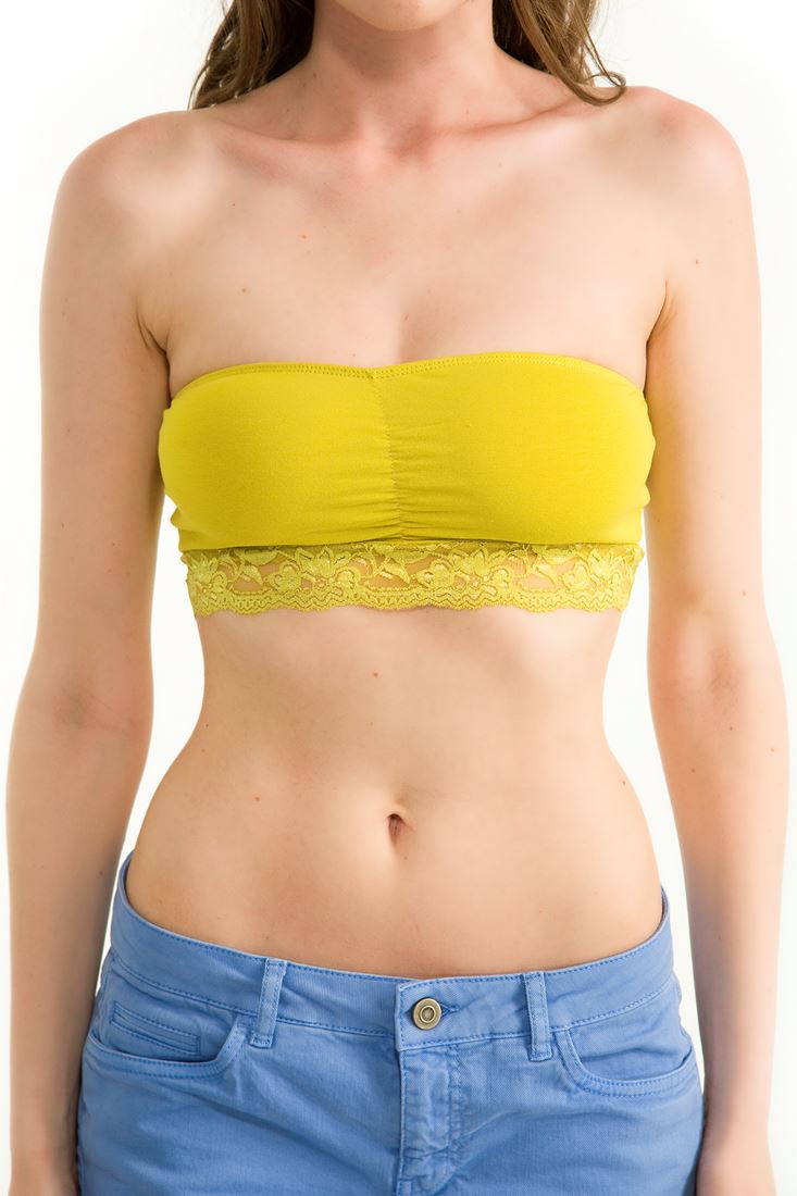 • Bayan Sarı Dantel Detaylı Lastikli Büstiyer