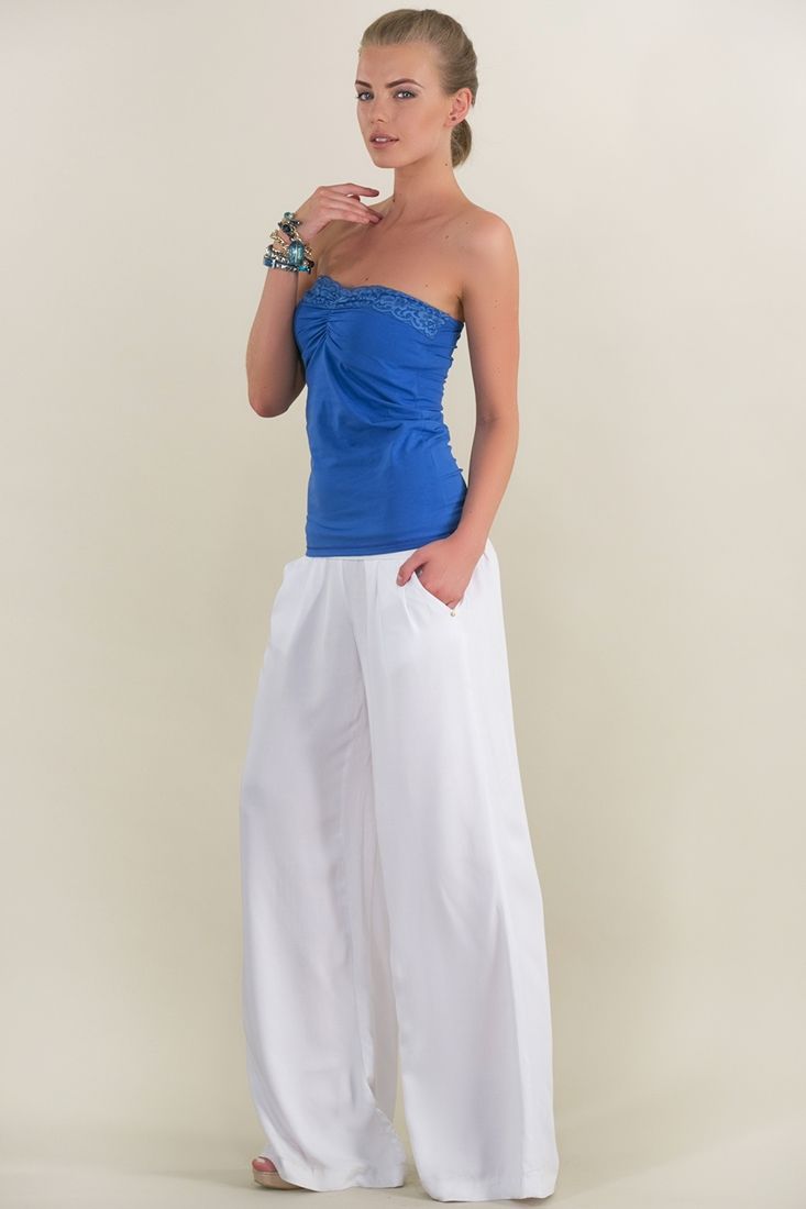 Mavi Dantel Detaylı Straplez Atlet