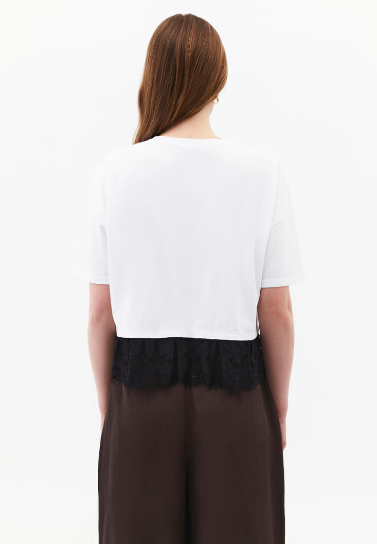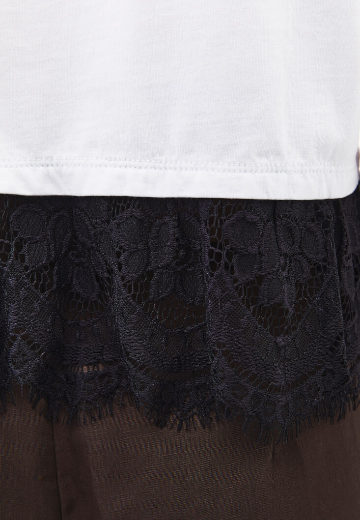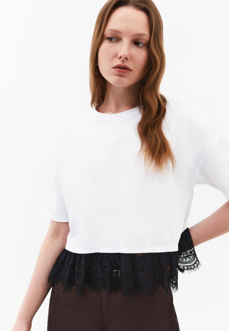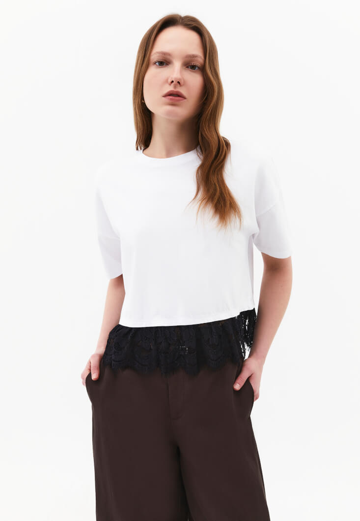 Beyaz Dantel Detaylı Tişört