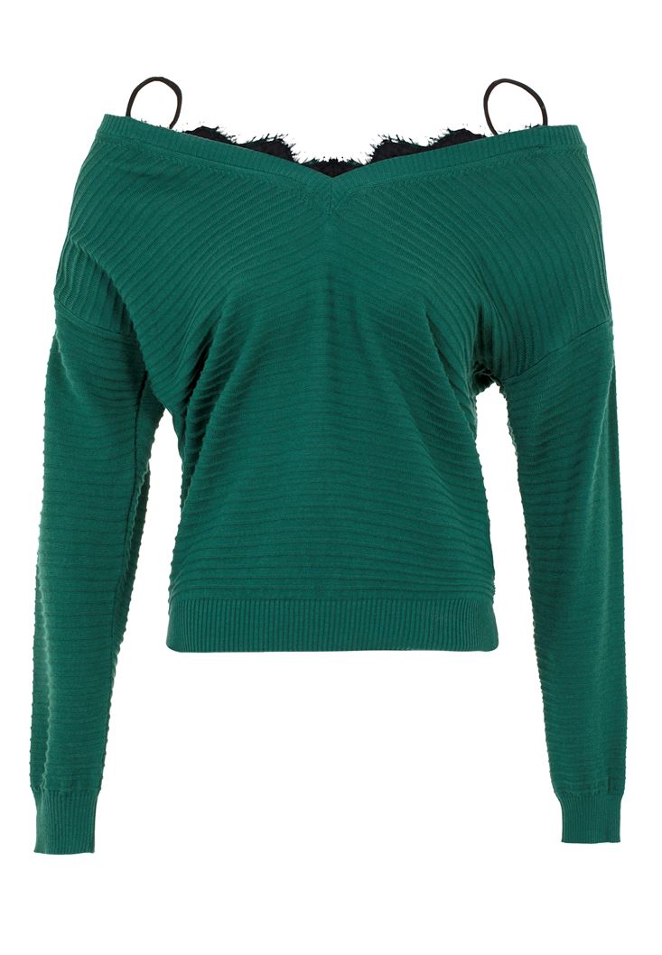 • Bayan Yeşil Dantel Detaylı Triko Kazak