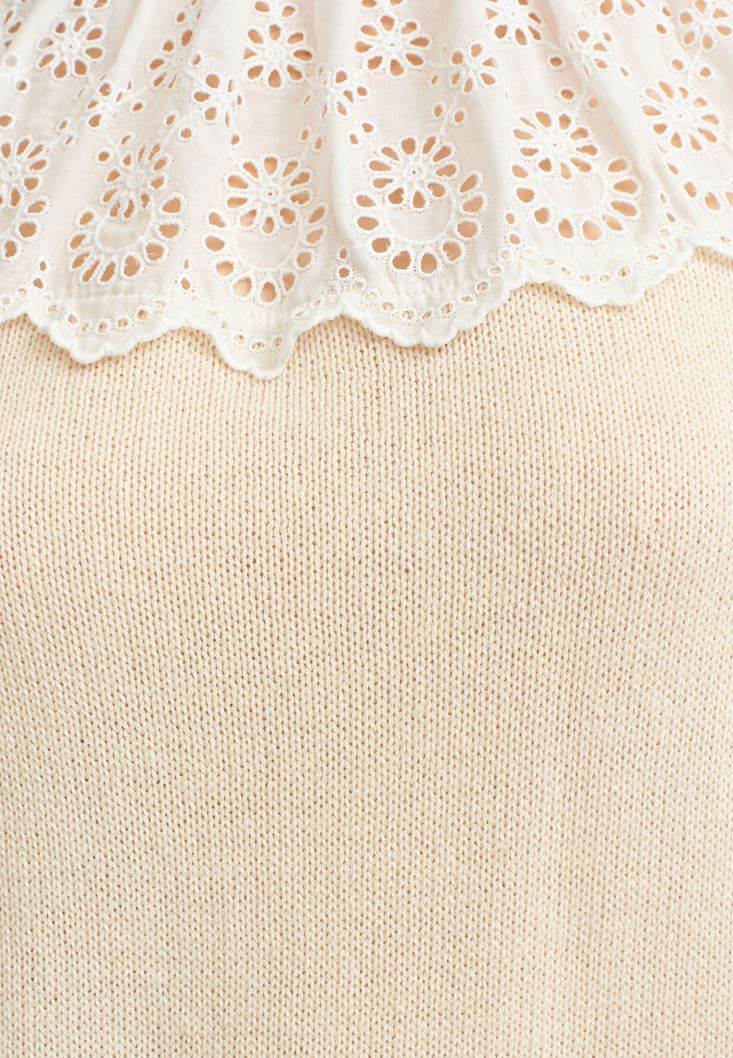 • Bayan Bej Dantel Detaylı Triko Kazak