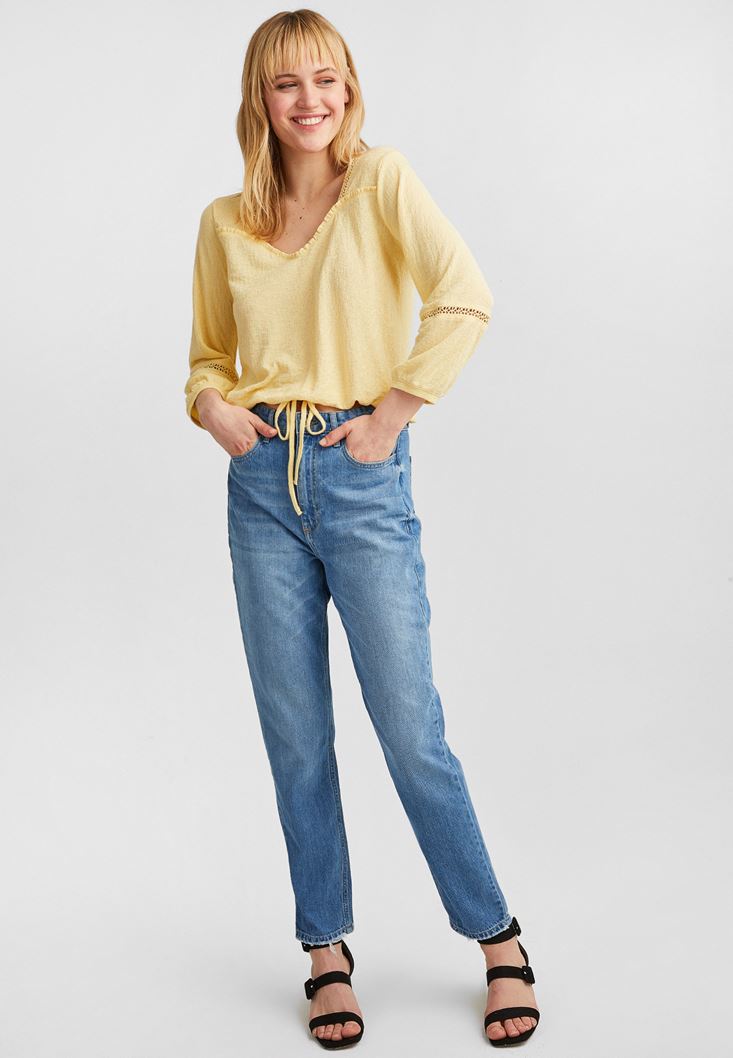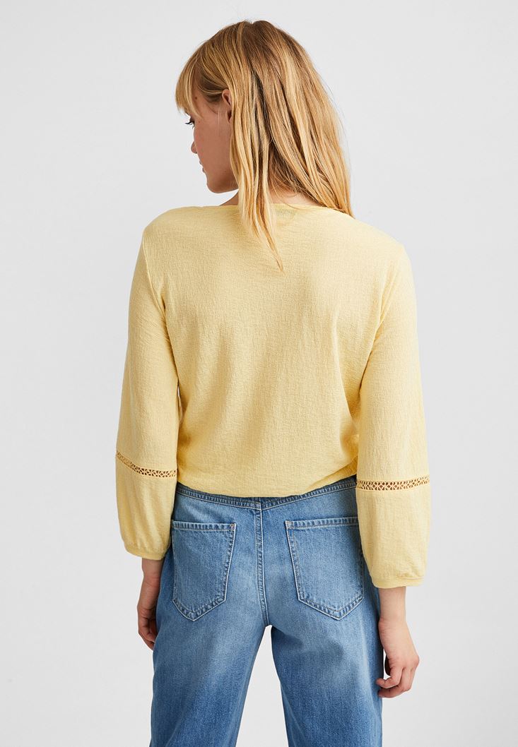 Sarı Dantel Detaylı Uzun Kollu Bluz