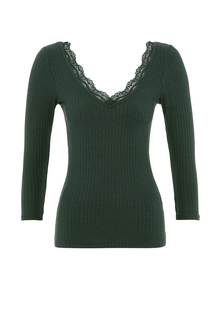 Yeşil Dantel Detaylı Uzun Kollu Tişört