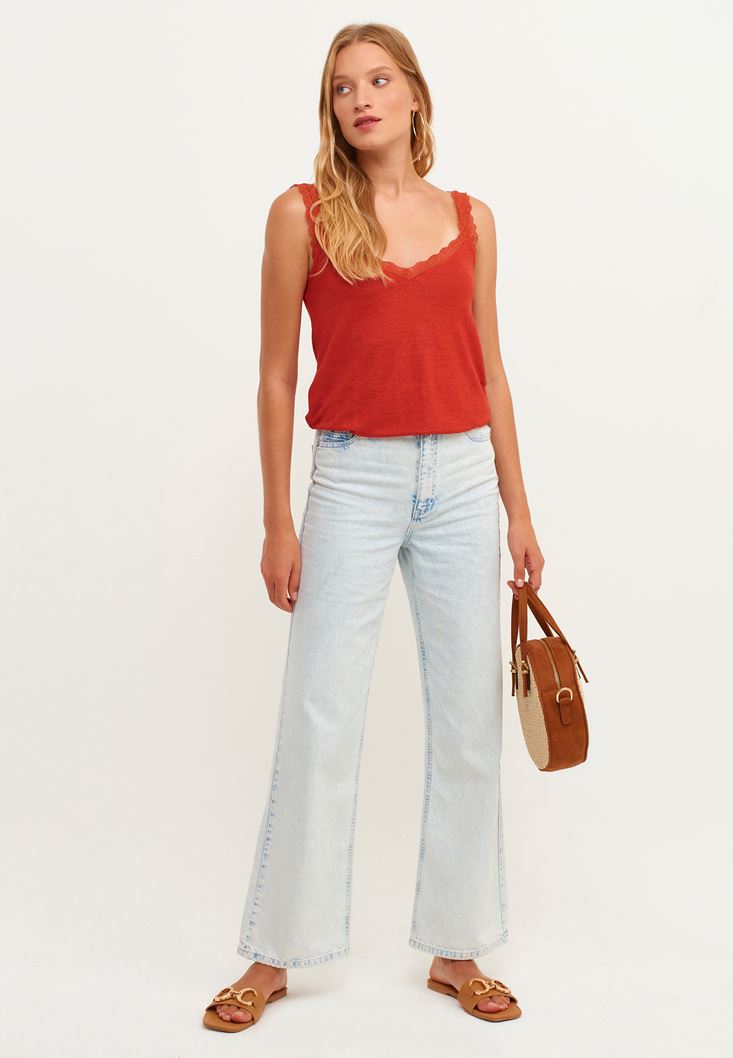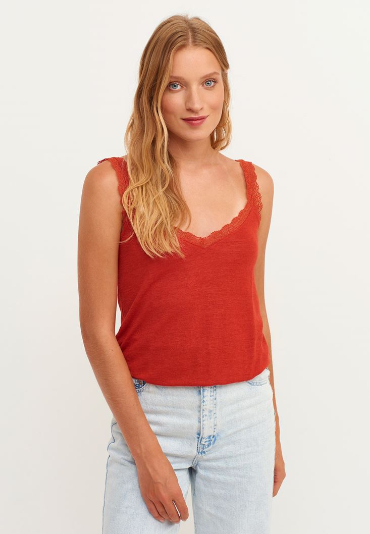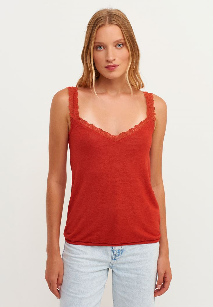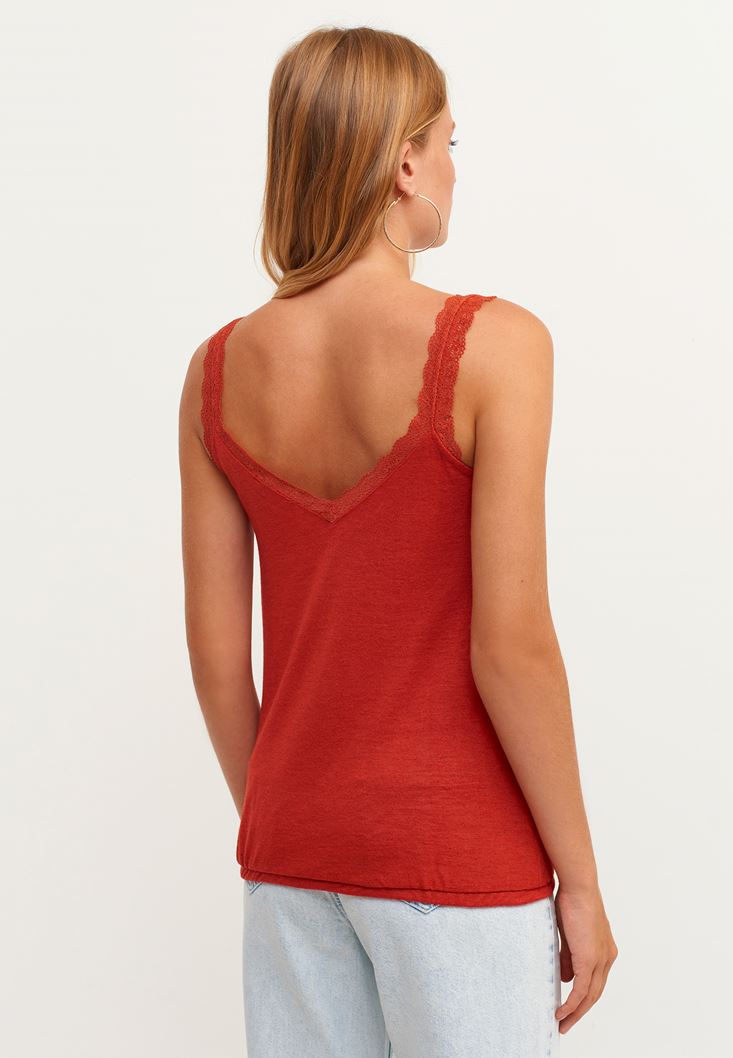 Kırmızı Dantel Detaylı V Yaka Atlet