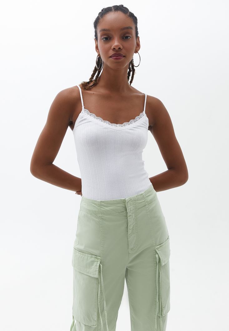 Beyaz Dantel Detaylı V Yaka Atlet