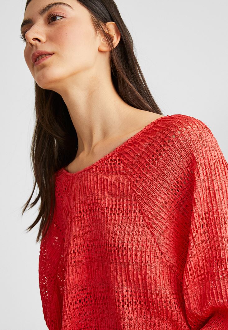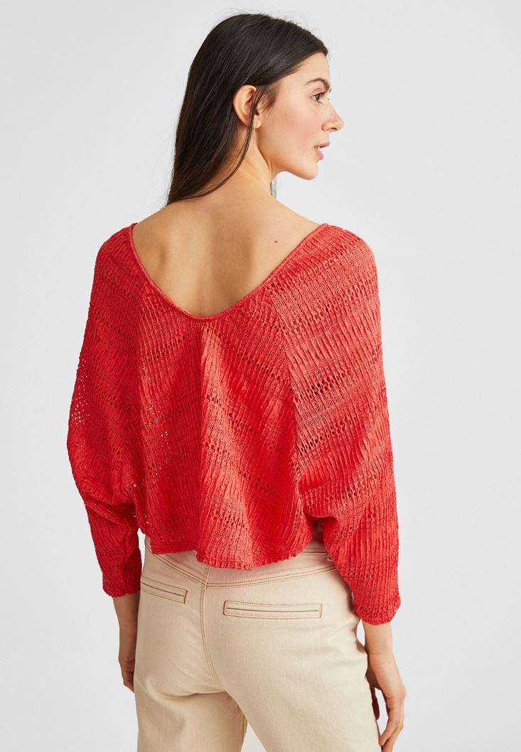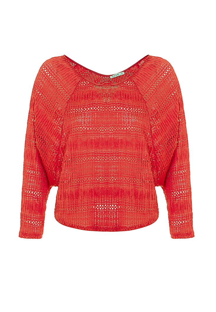 • Bayan Kırmızı Dantel Görünümlü Bluz
