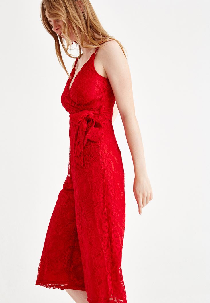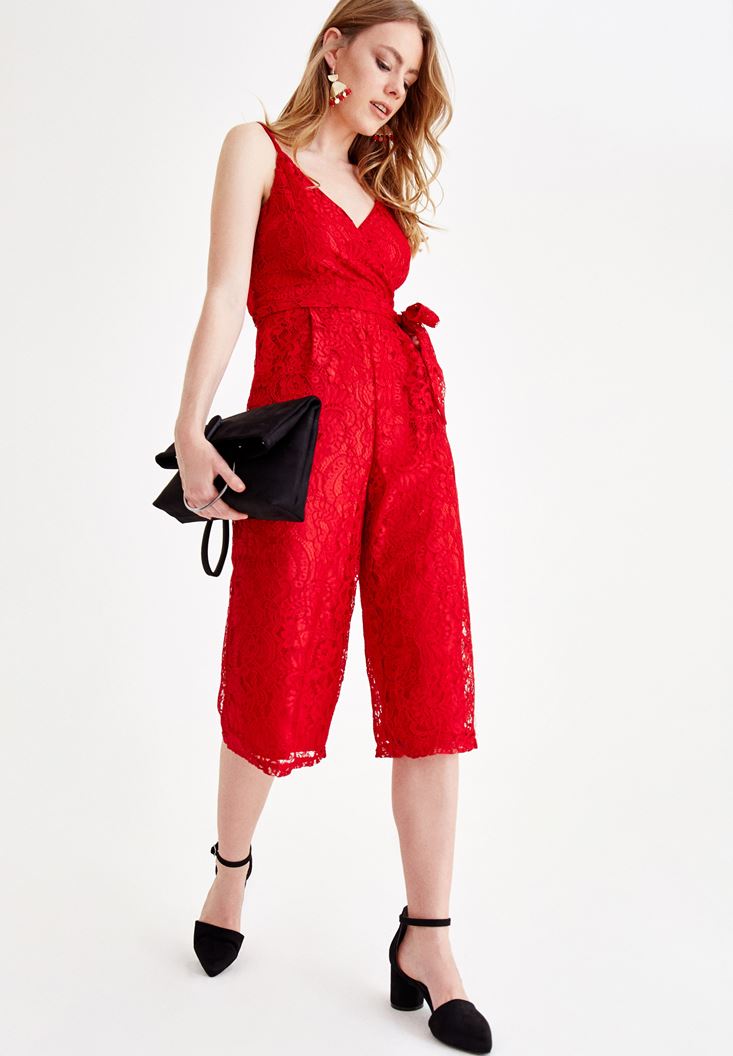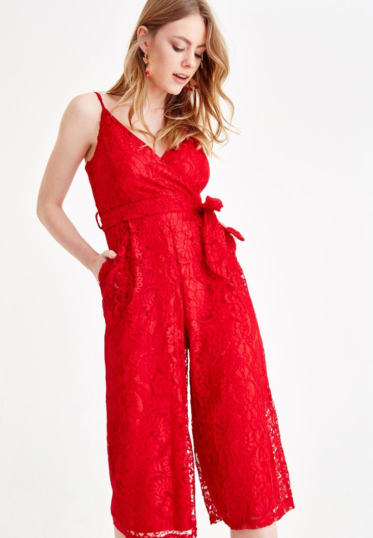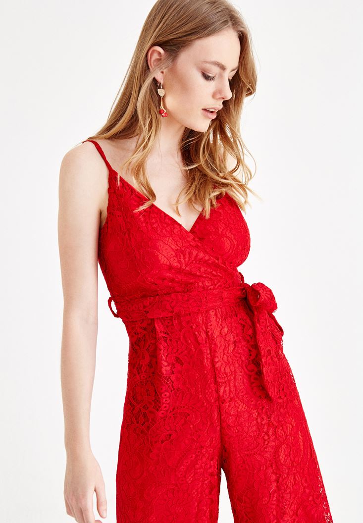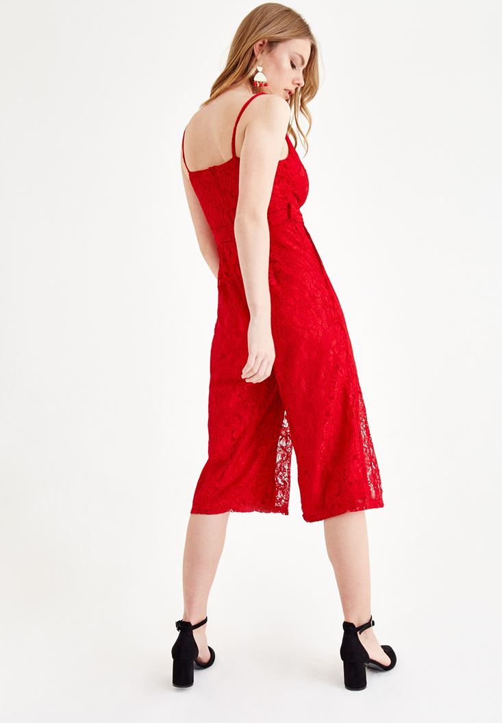 Dantel Tulum modeli vücudu saran üst beden tasarimi ve konfor sunan alt beden tasarimi ile her zaman severek kullanacaginiz parçalardan birisi olacak. Çapraz geçisli V taka kesimi, ince askilari ve kare kesim sirt detayi ile dikkat çeken tulum modelinin bel hizasinda bulunan kemer detayi da oldukça hos bir görünüm sunuyor. Kemer detayini öne çikaran kurdele ise tasarimin üzerinde bulunan dantel detaylar ile uyum saglayarak tasarim bütünlügü sunuyor. Kisa paça boyu ve genisleyen paça kesimi ile konforlu bir siklik sunan tulum modeli dantelin zarafetini ve asaletini basarili bir sekilde yansitan tasarimlar arasinda yer aliyor. OXXO'nun floral desenlerden ve dantel dokulardan aldigi ilhami yansitan tasarimlarindan birisi olan tulum modeli ile her zaman konforlu bir siklik elde edebilirsiniz.
