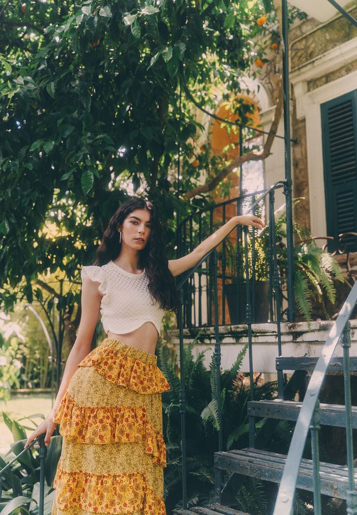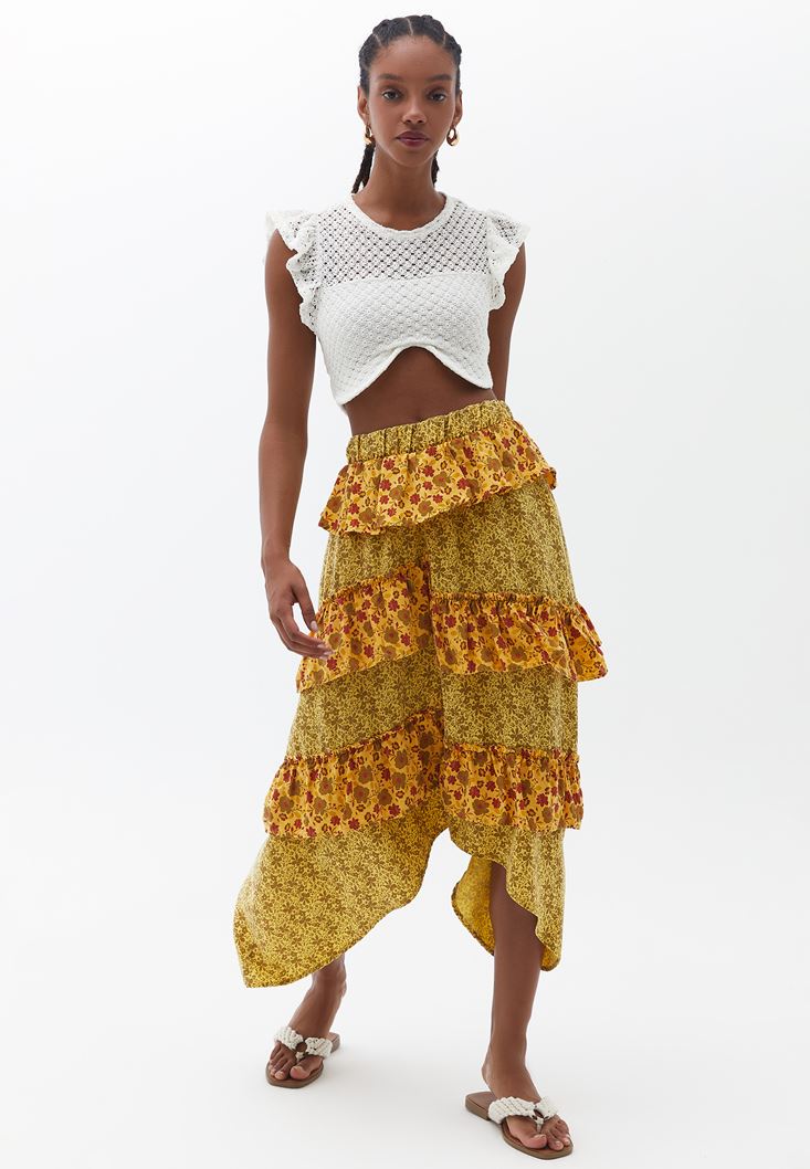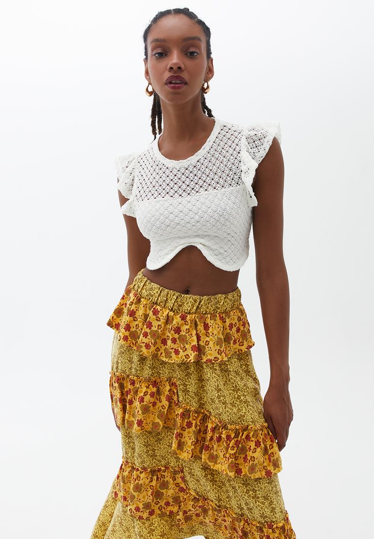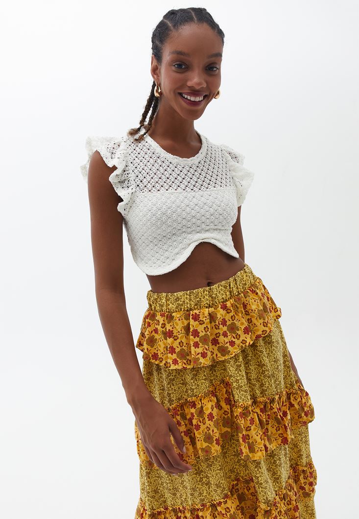 Dantelli Crop Bluz ve Fırfırlı Etek Kombini