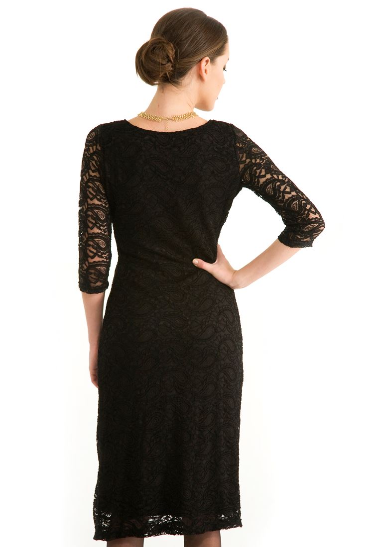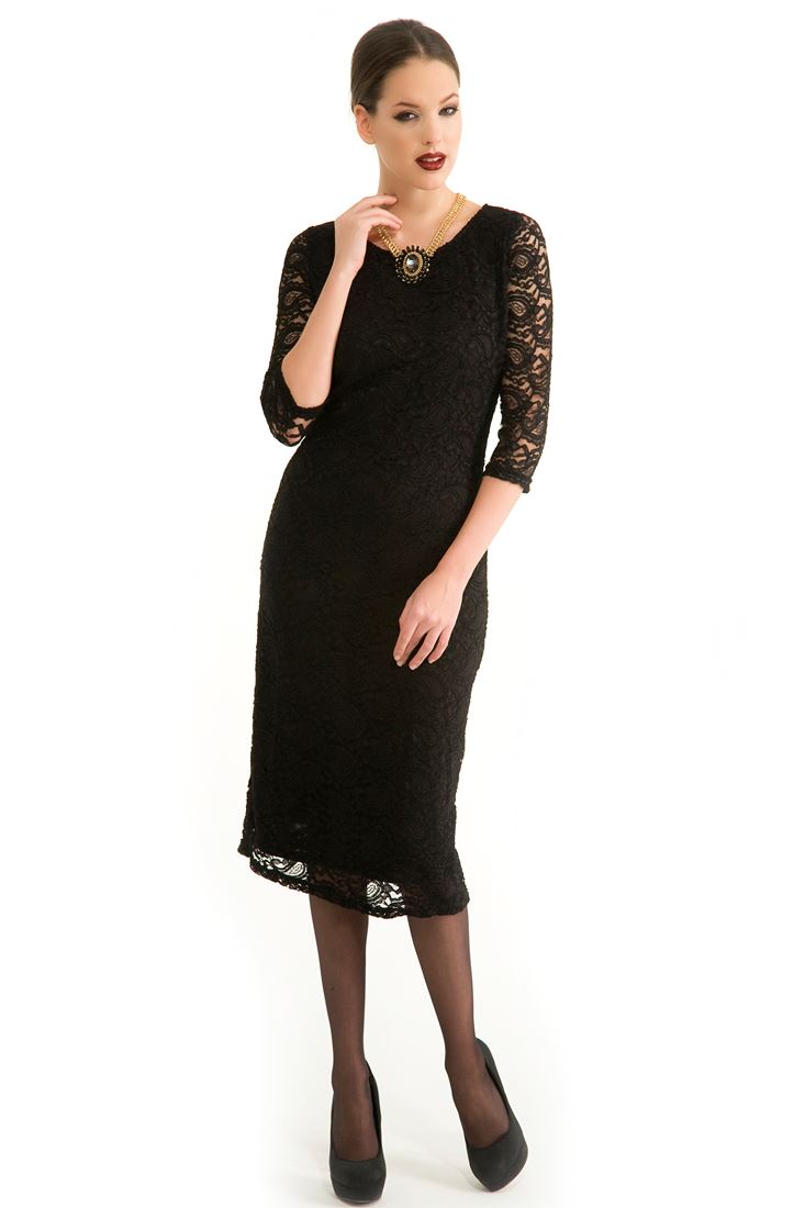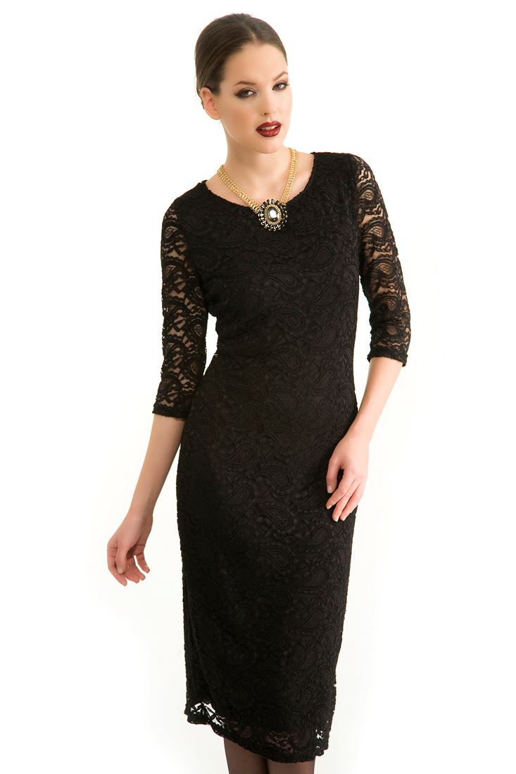 • Bayan Siyah Dantelli Elbise