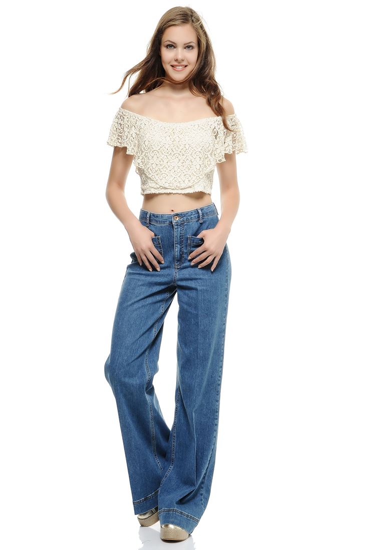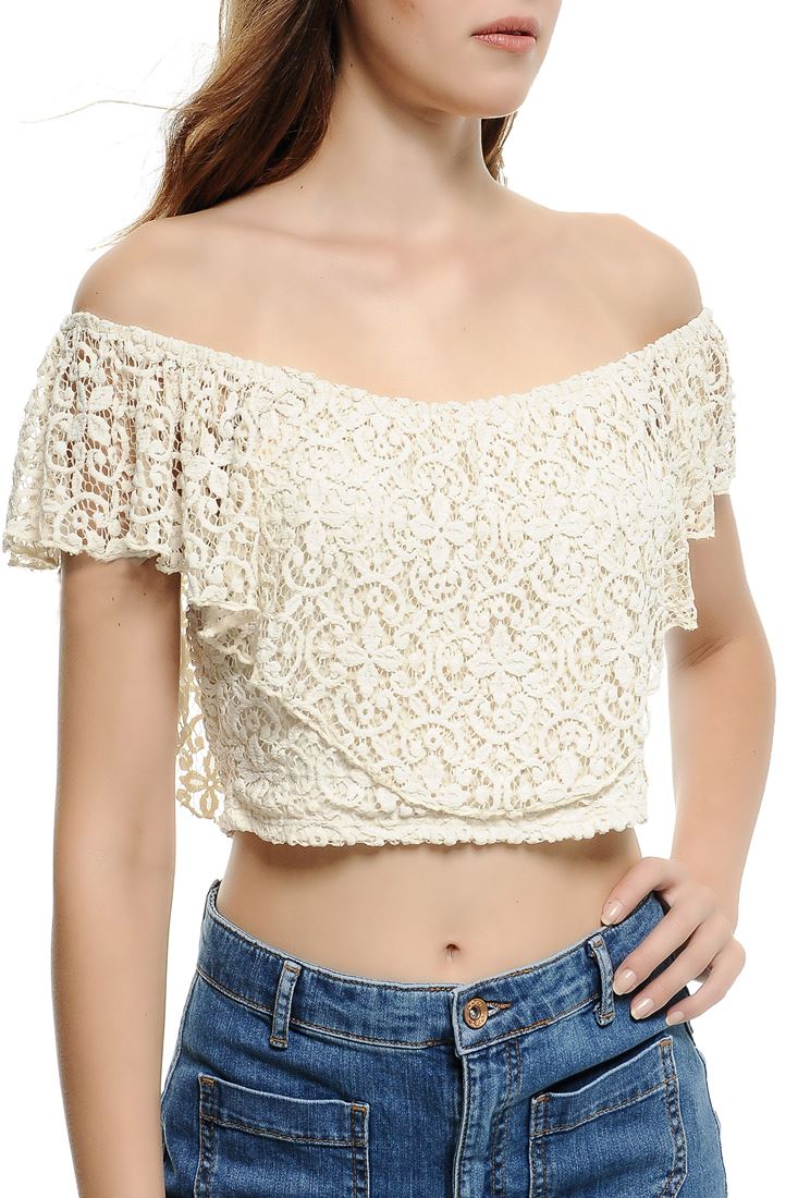 Krem Dantelli Kısa Bluz