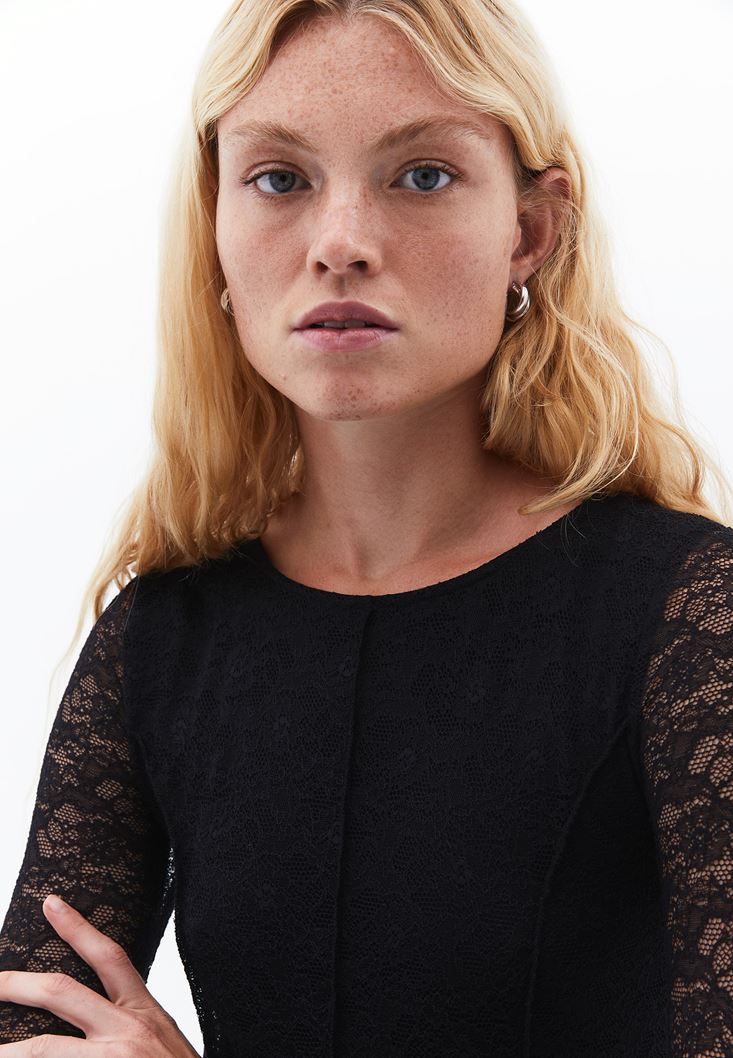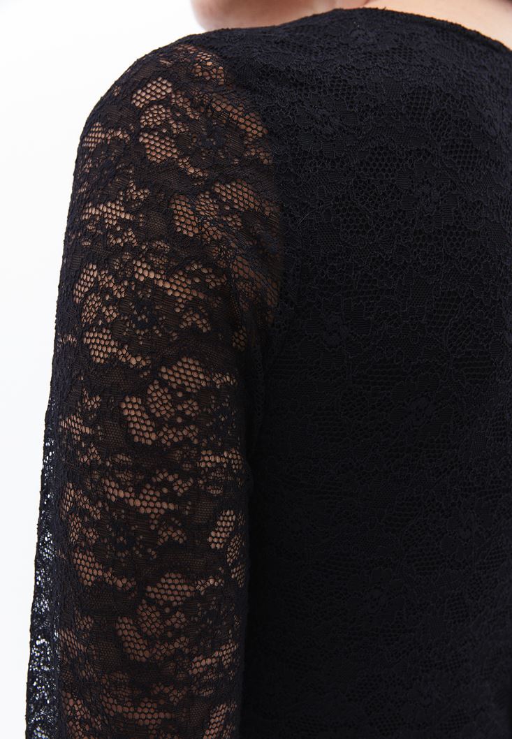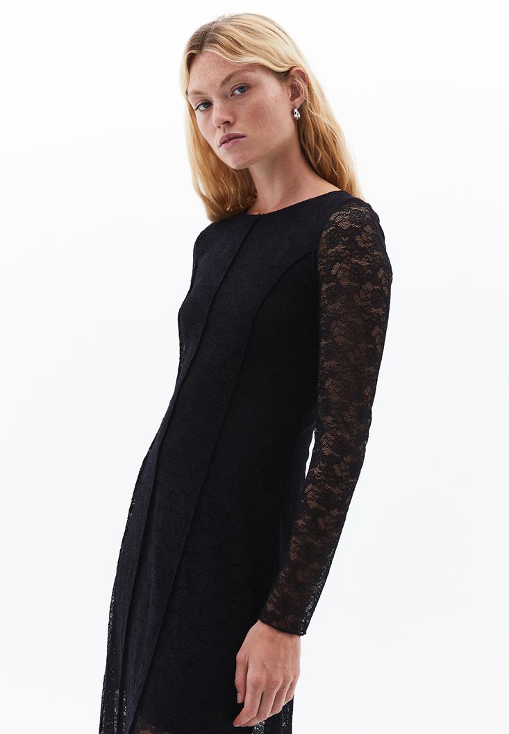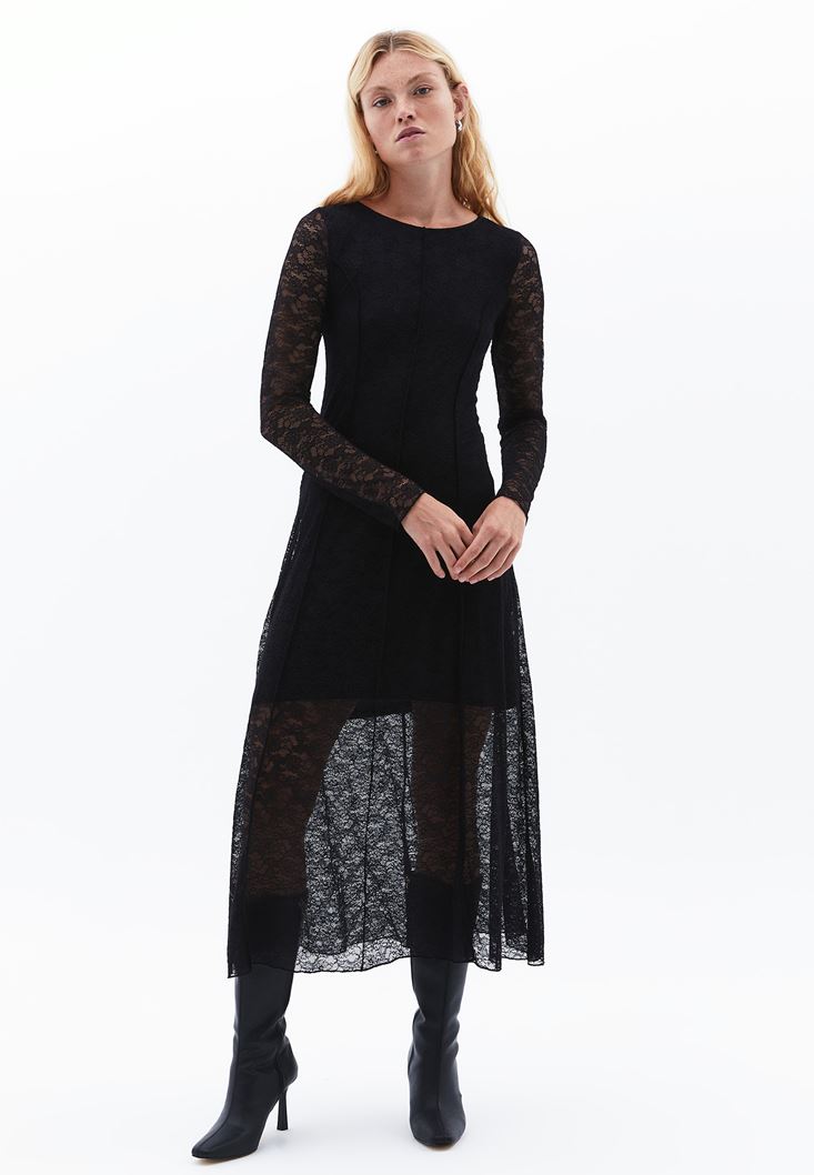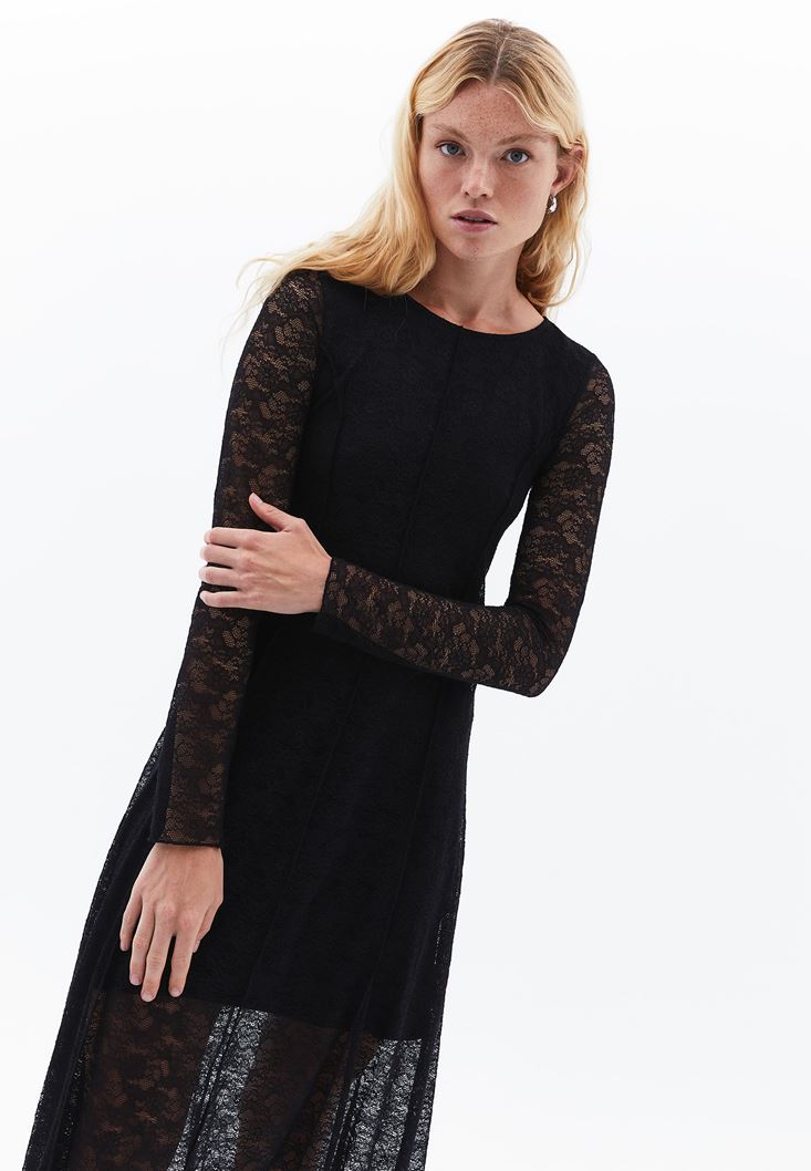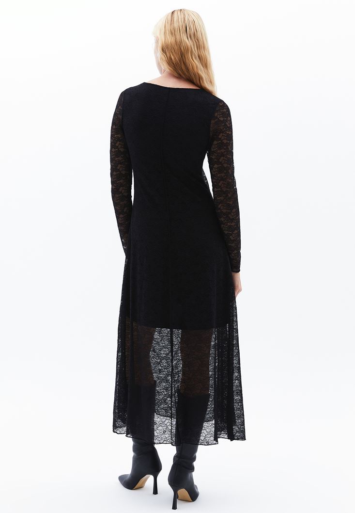 Siyah Dantelli Uzun Elbise