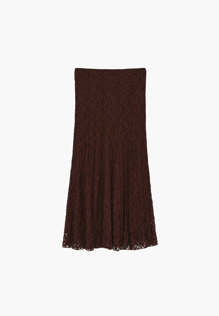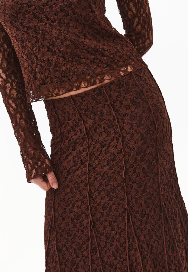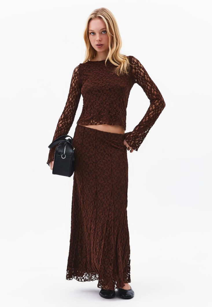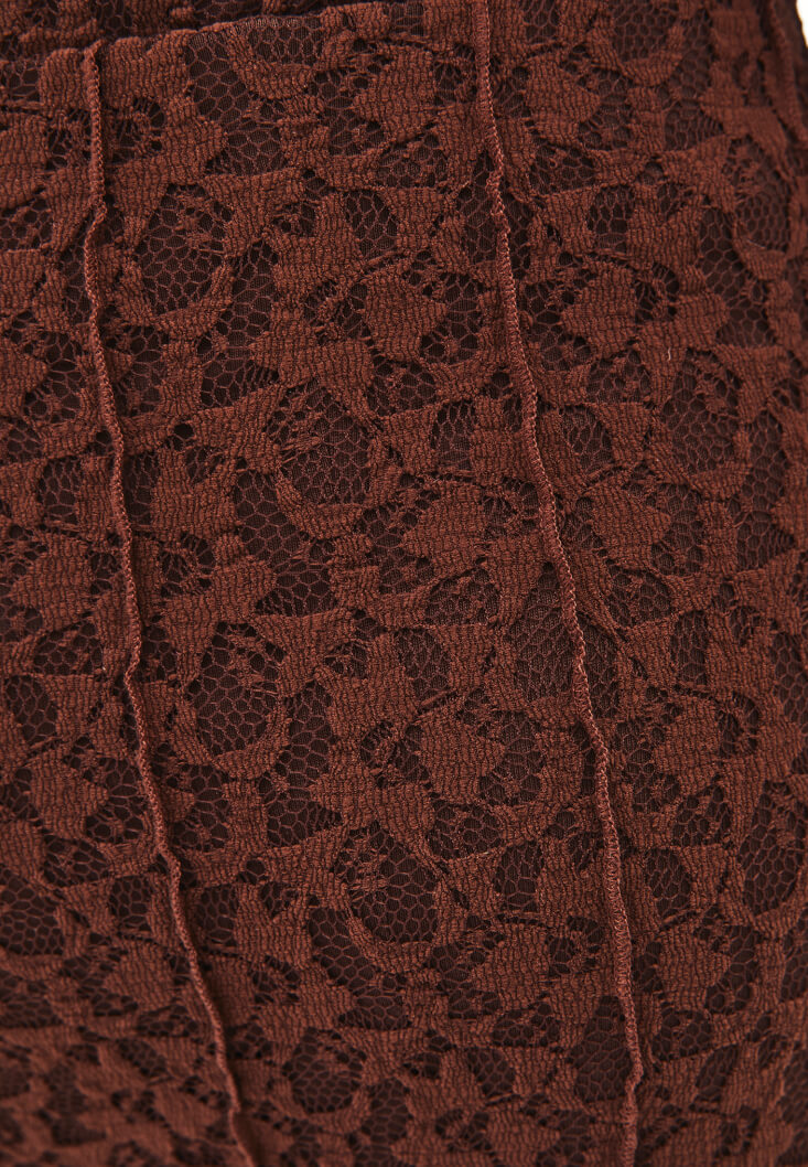 • Bayan Kahverengi Dantelli Uzun Etek