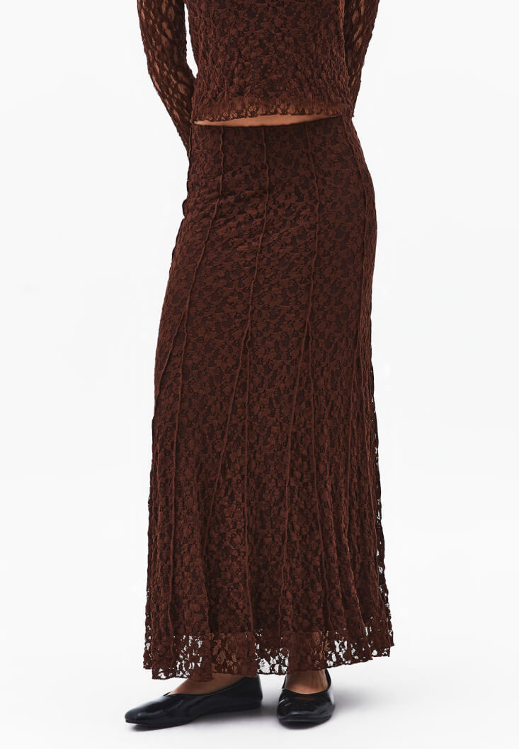 Kahverengi Dantelli Uzun Etek