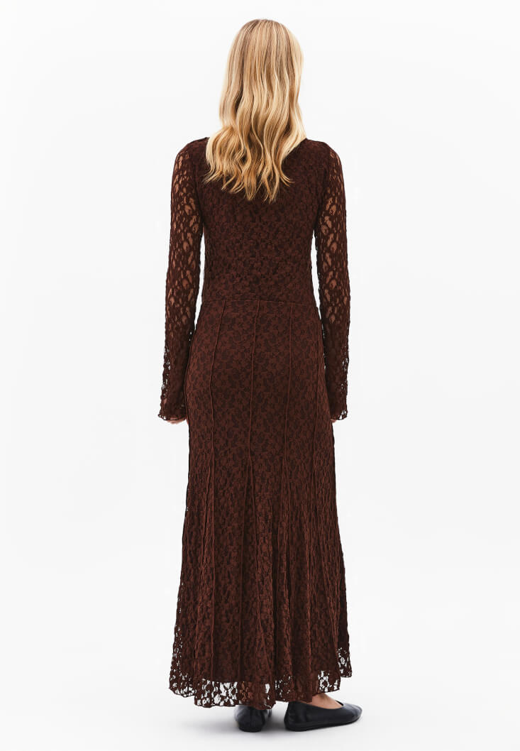Ürünün odağında yer alan ince işçilikli dantel doku, silüetinize anında sanatsal bir derinlik katarken; dökümlü yapısı her adımda estetik bir akışkanlık sunar. Kahve tonunun (Chicory Coffee) rafineliğini yansıtan bu tasarım, bedeninizi nazikçe saran esnek yapısı sayesinde gün boyu sınırsız bir konfor vadeder. İşçiliğindeki özen ve kumaşın narin zarafeti, en sade kombinleri bile podyum şıklığına taşıyacak bir estetik sunuyor.