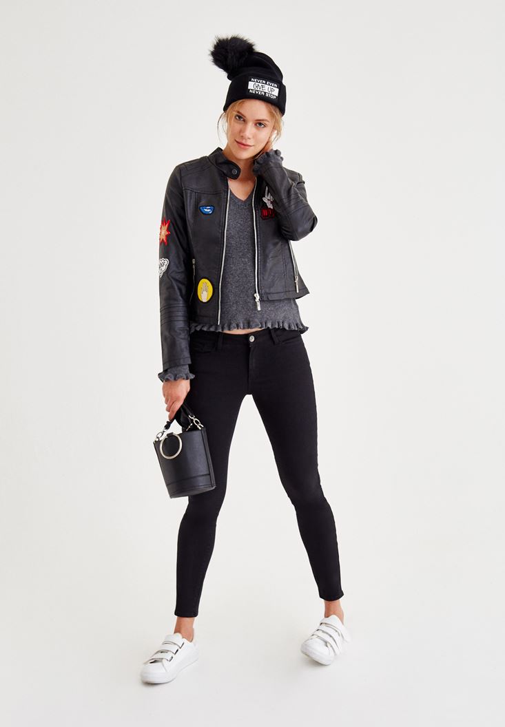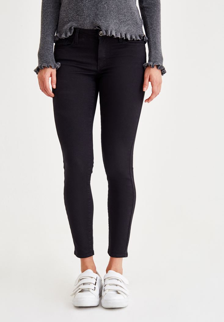 • Bayan Siyah Dar Paça Düşük Bel Pantolon