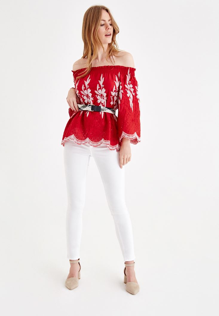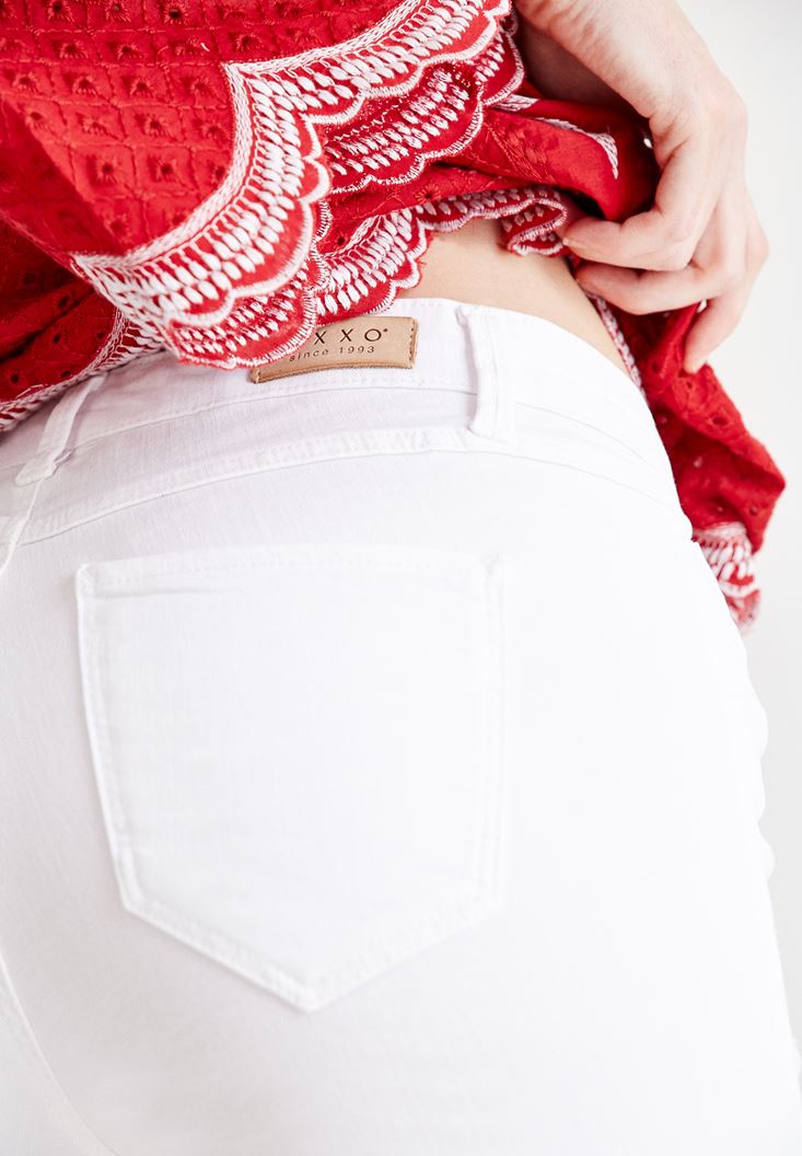 Beyaz Dar Paça Orta Bel Pantolon