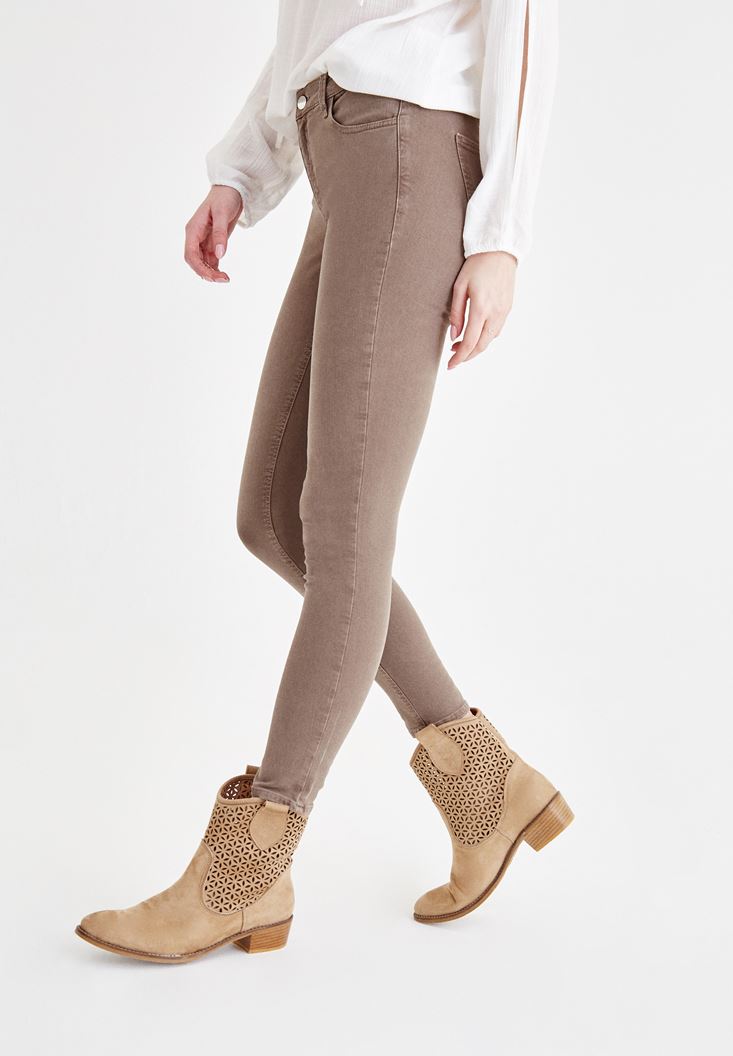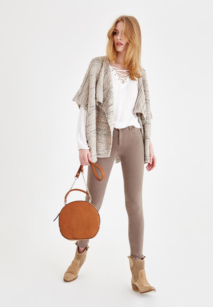OXXO ilhamini enerjisi ve gülümsemesi hiç bitmeyen kadinlardan alan tasarimlari ile size konforlu bir siklik sunuyor. Bu tasarimlarin tüm özelliklerini detaylarinda barindiran dar paça orta bel pantolon modeli ile kendinize farkli bir siklik deneyimi sunabilirsiniz. Yumusak dokusu, vücudu saran yapisi ve çok sik detaylari ile her zaman severek kullanacaginiz pantolon modelleri arasinda yer alan tasarim ile günlük ve spor sikliginizi tamamlayacak kombinler yapabilirsiniz. Klasik cepli bir pantolon tasariminin yani sira topuklu ya da düz ayakkabilar ile kullanabileceginiz paça boyuna sahip pantolon modeli dolabiniza kolayca uyum saglayacak. Dilerseniz gece disari çikarken birkaç isiltili aksesuar ile tamamen degisim elde edebileceginiz pantolon modelleri arasinda yer alan tasarimi günün her anindan büyük bir keyifle kullanacaksiniz.