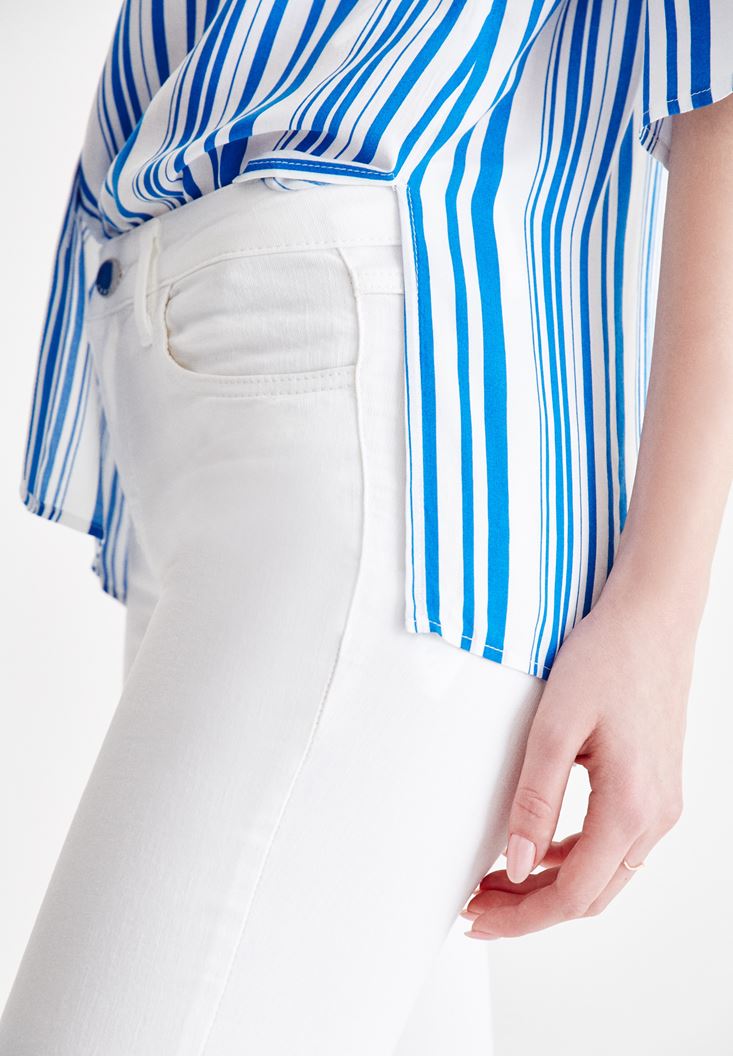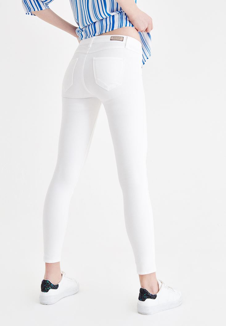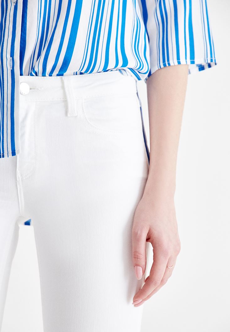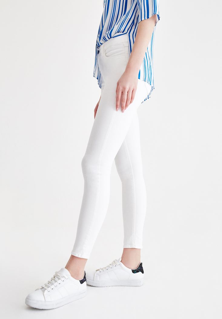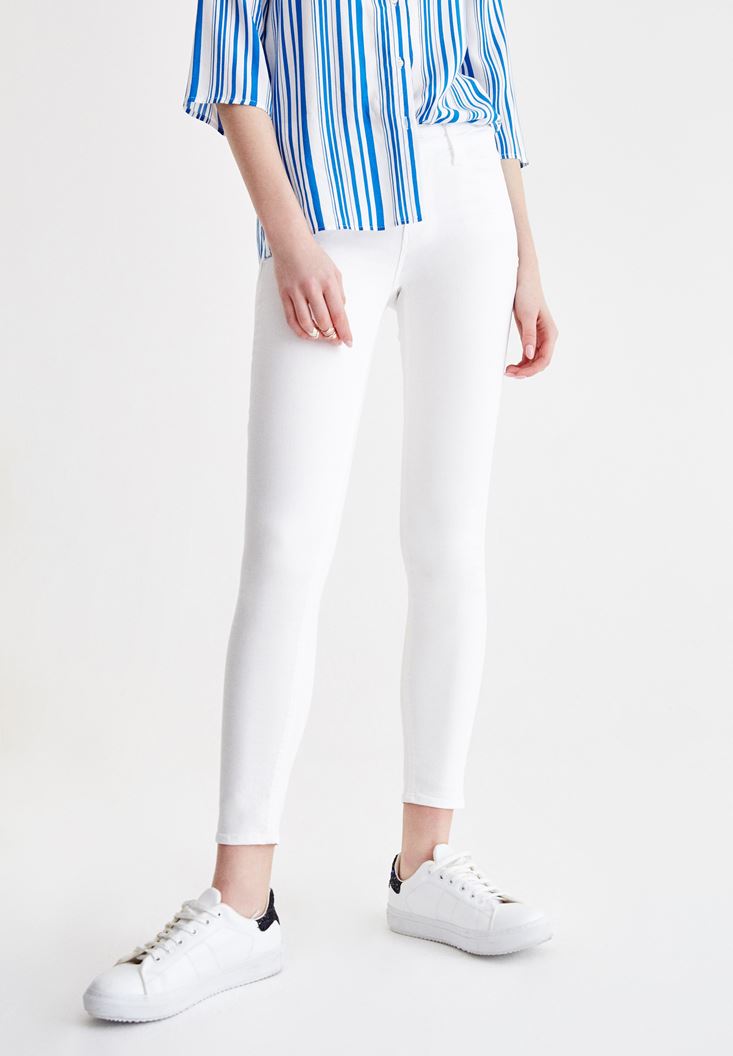 • Bayan Krem Dar Paça Orta Bel Pantolon