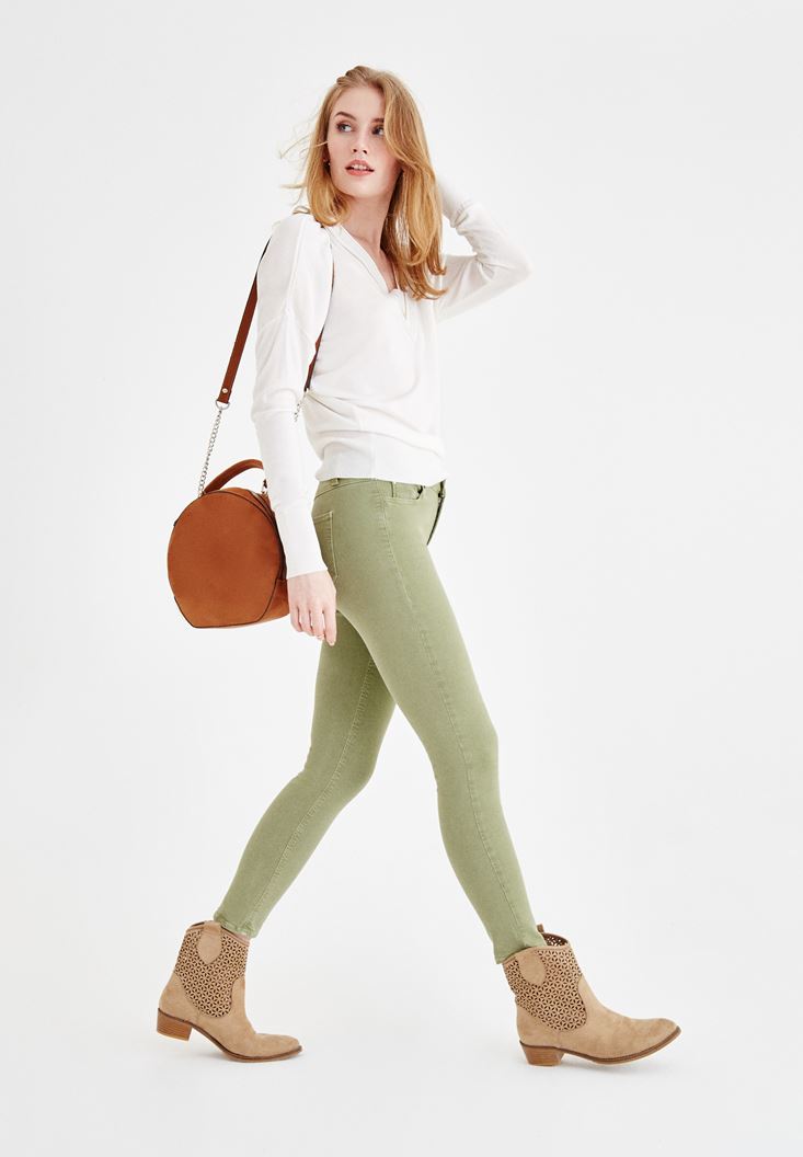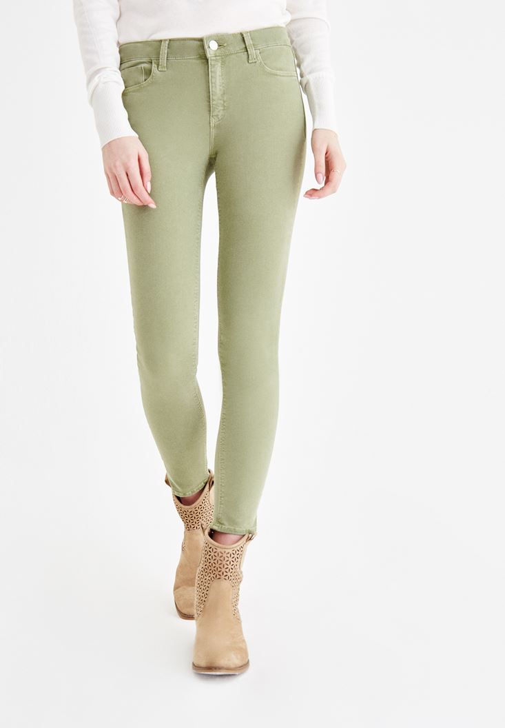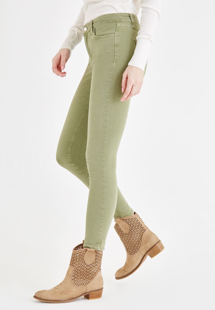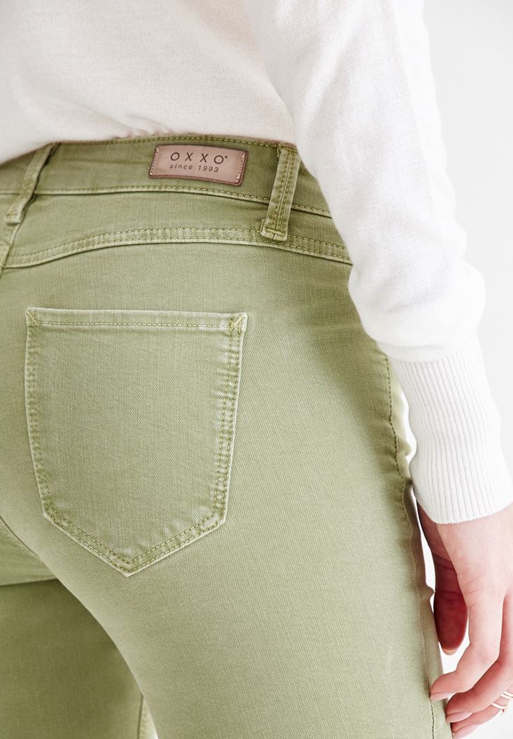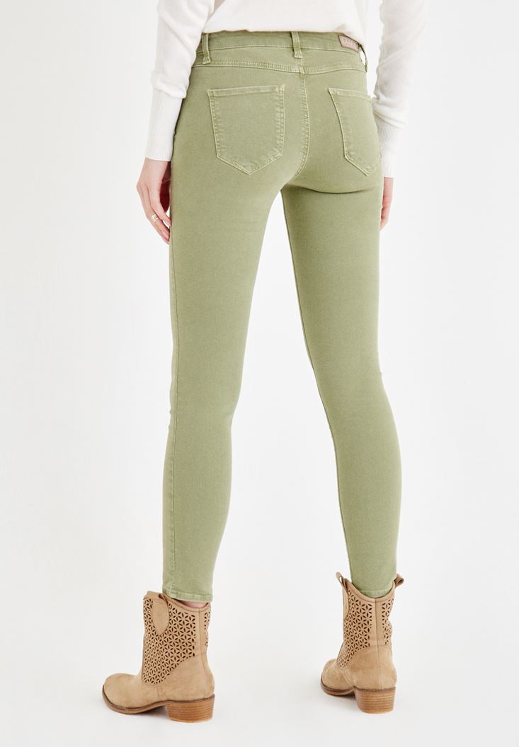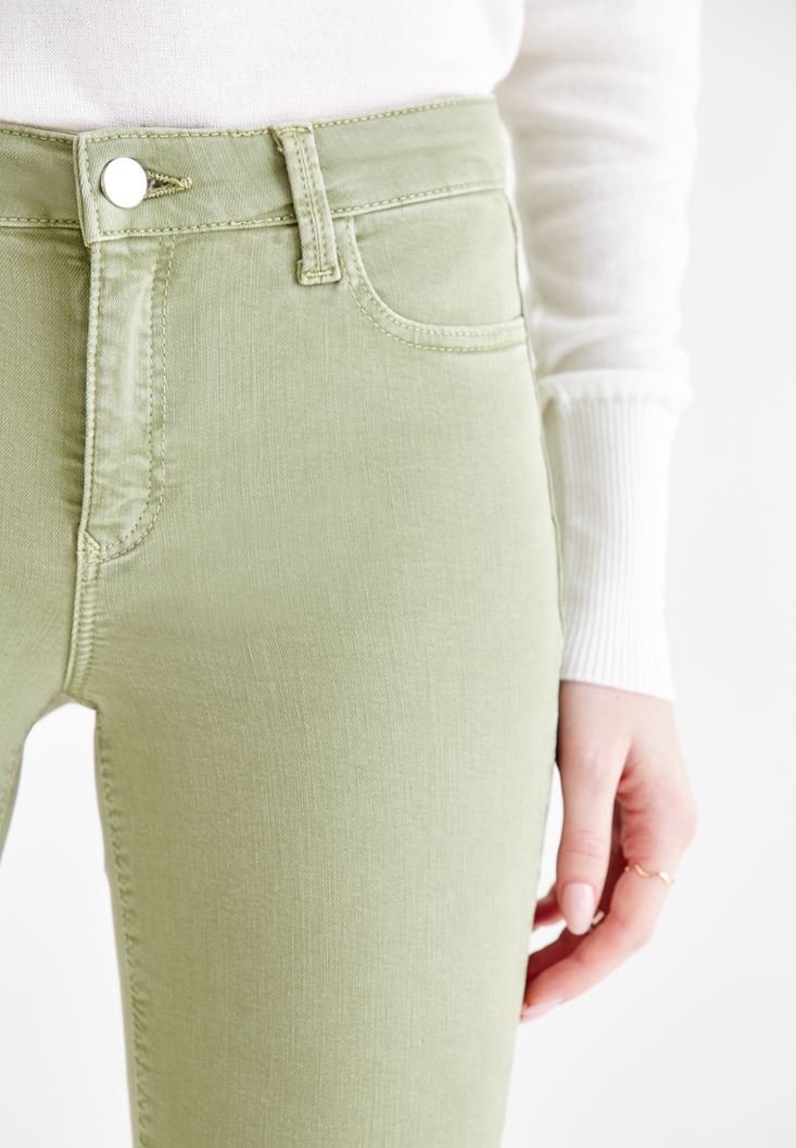 Yeşil Dar Paça Orta Bel Pantolon