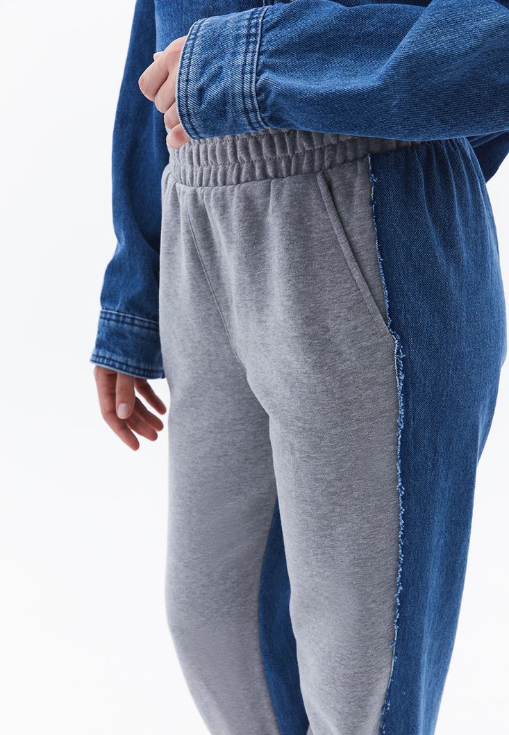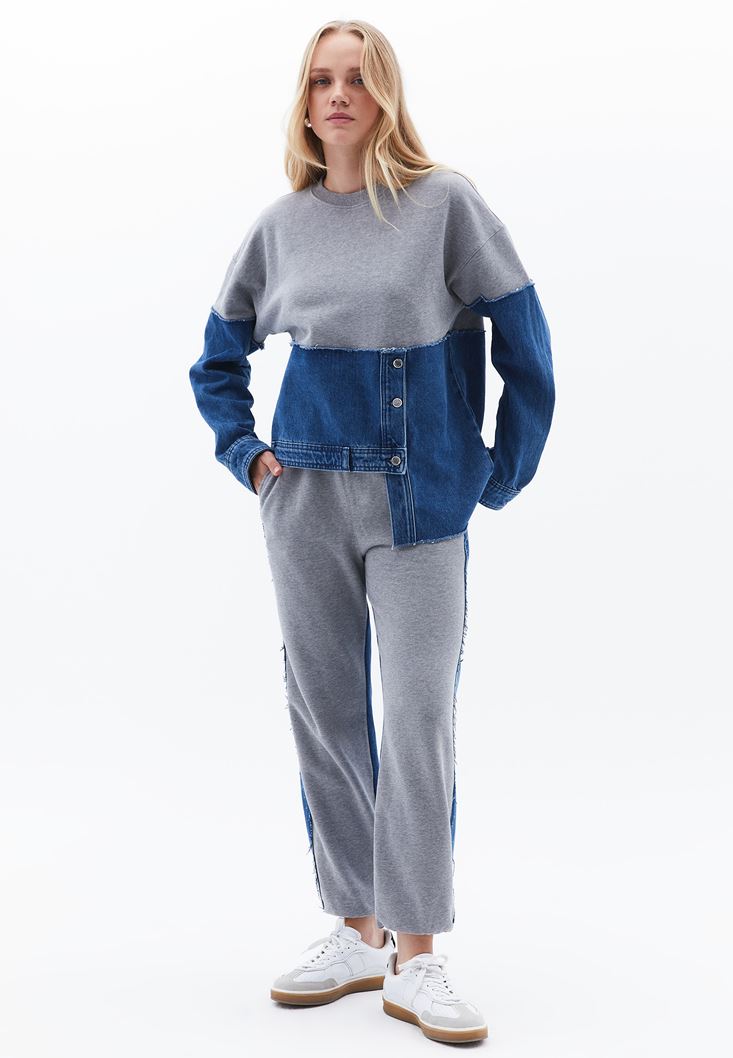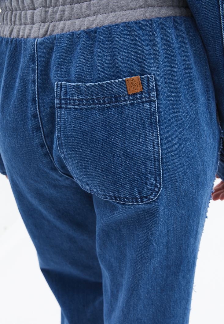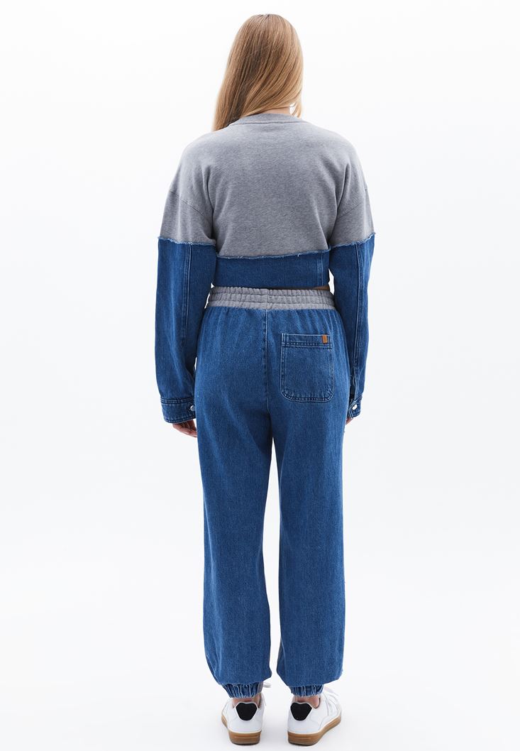 %100 pamuk içerikli doğal doku, sweat ve denim karışımlı mix tasarım, yüksek bel, beli ve paçası lastikli, iki cepli, arka kısmı tek cepli, bedenden uzak rahat fit.