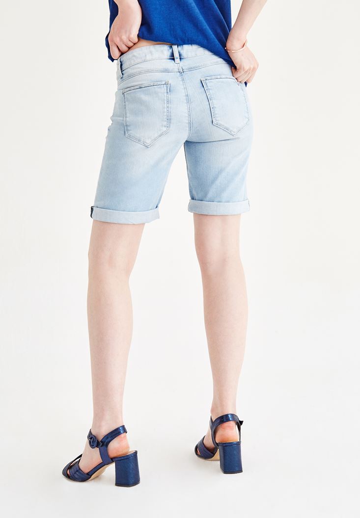 • Bayan Mavi Denim Diz Üstü Şort