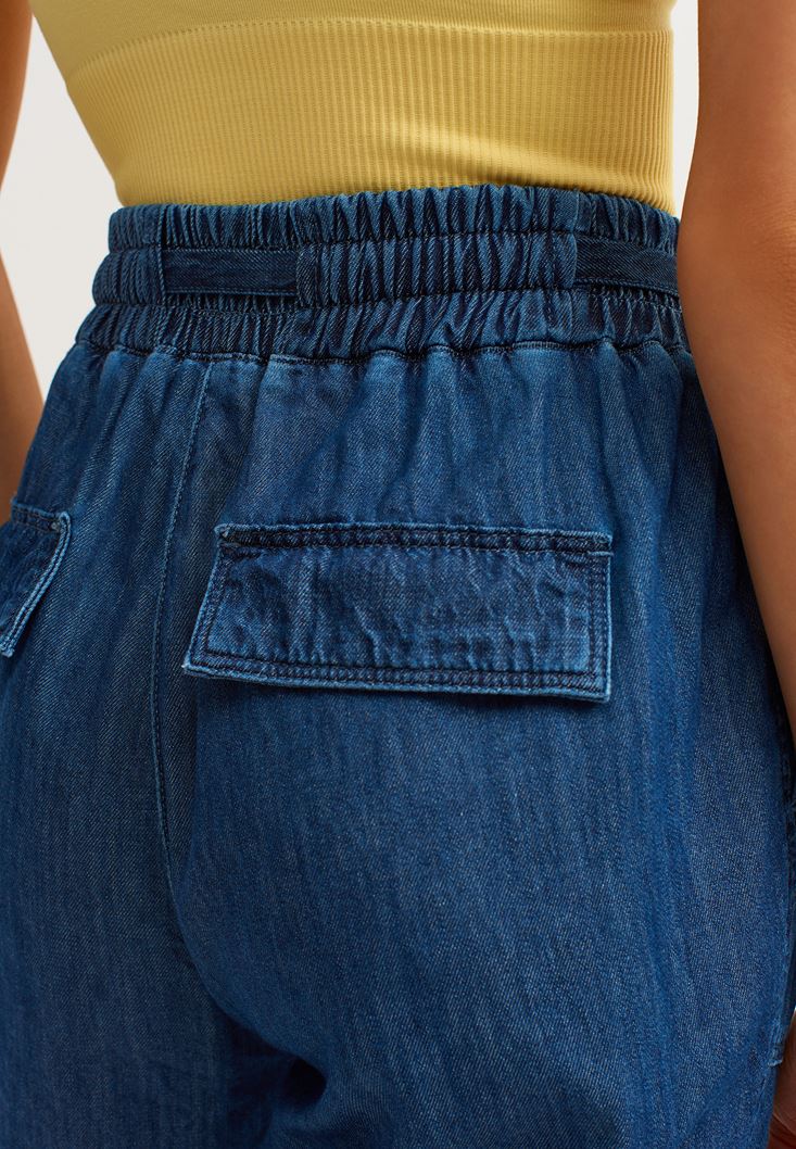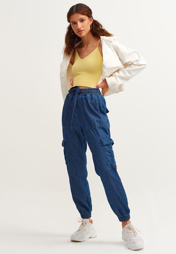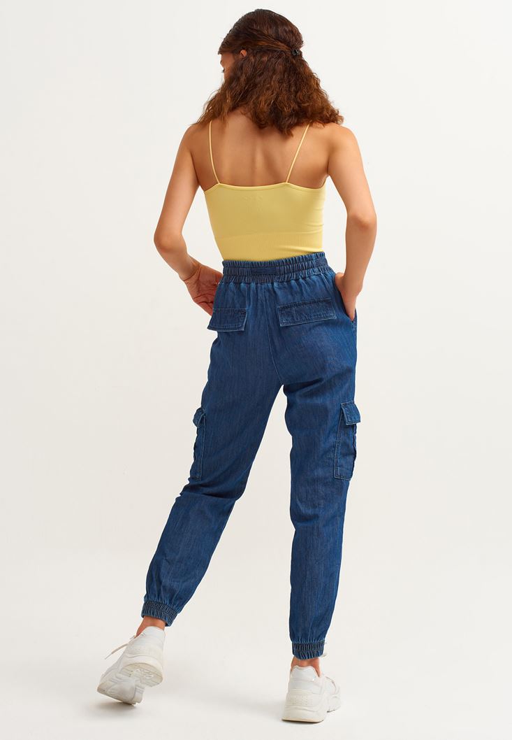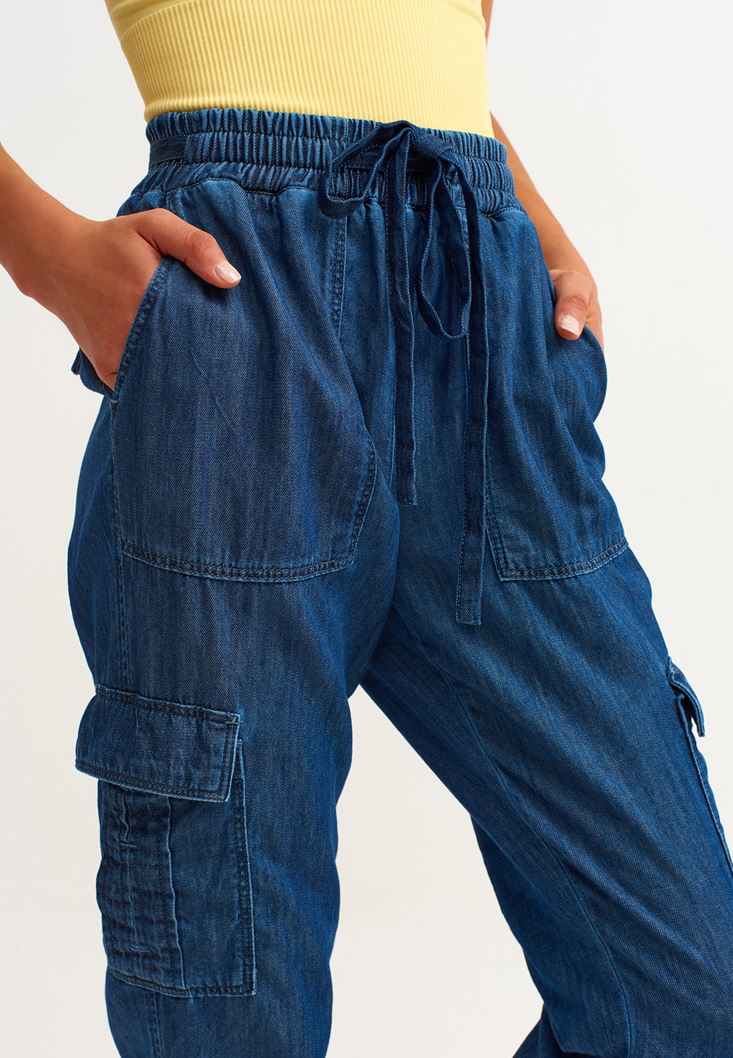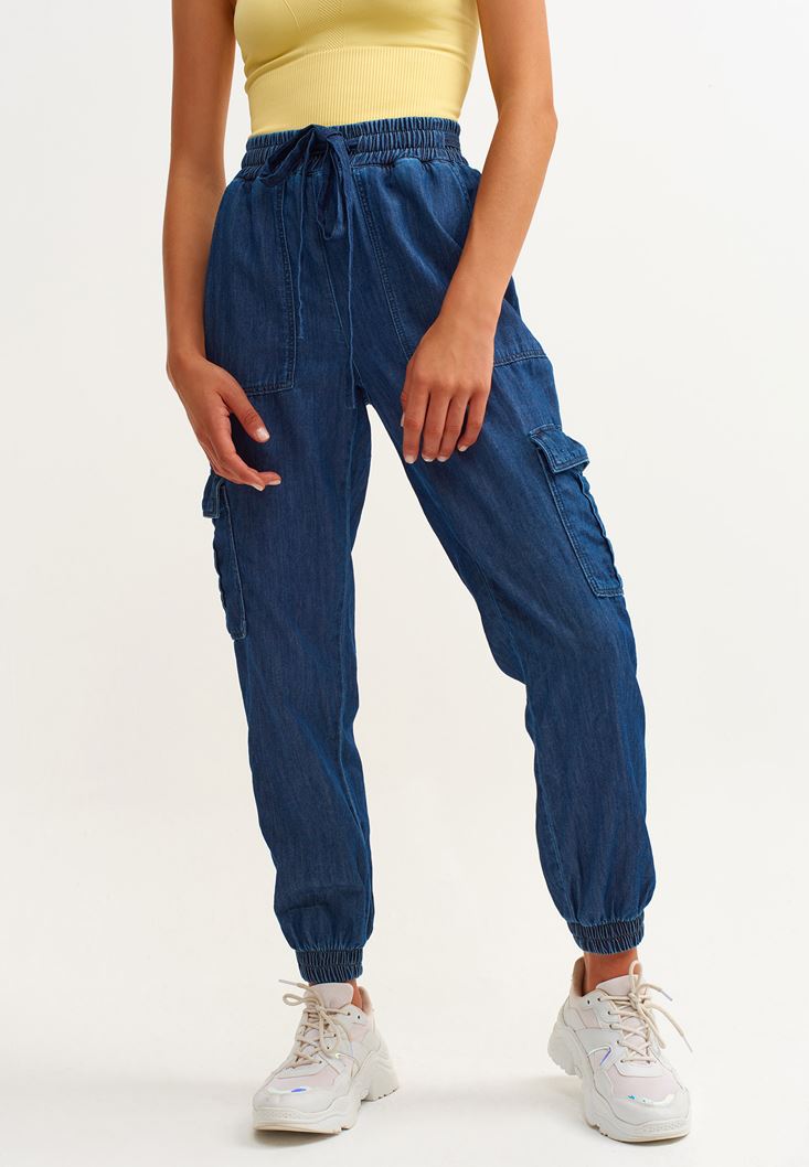 • Bayan Mavi Denim Kargo Jogger Pantolon