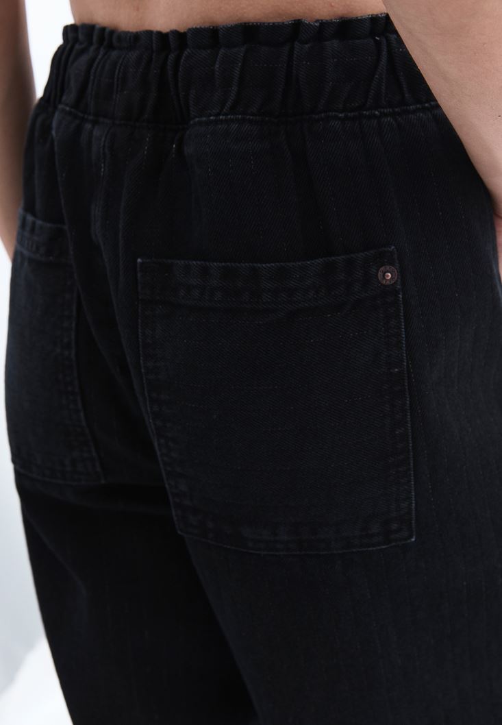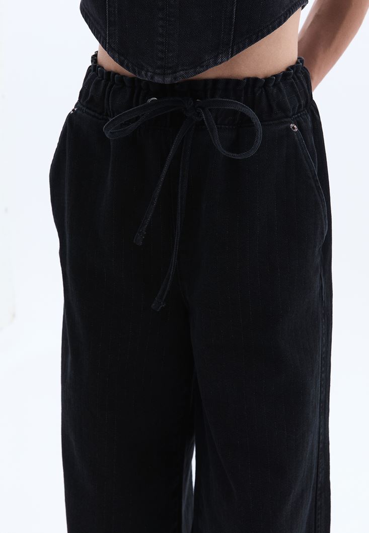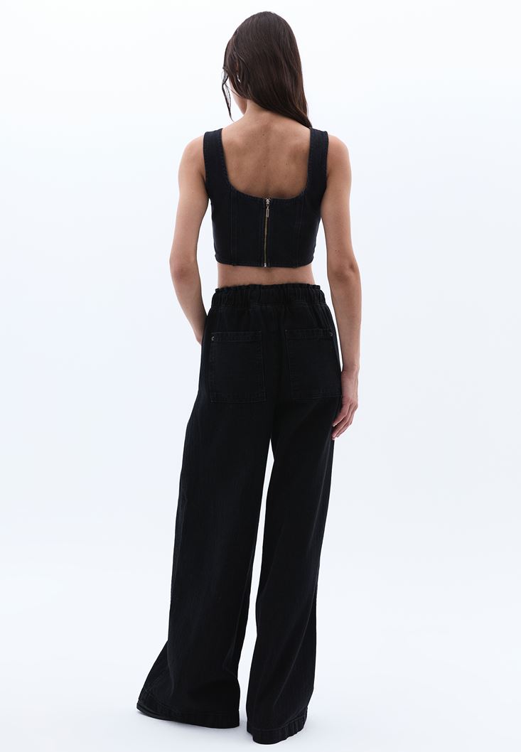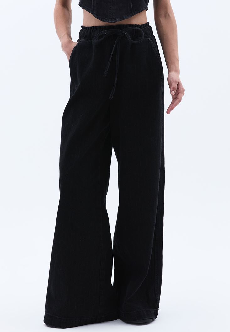 Yüksek Bel Wide-Leg Denim Pantolon