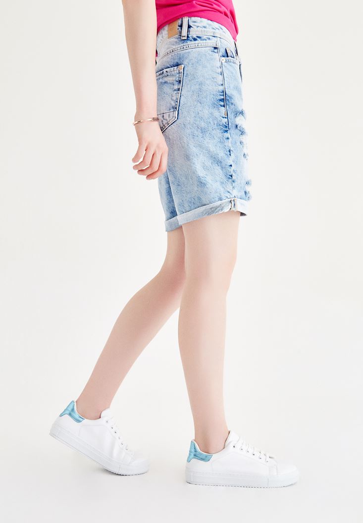 Yaz aylarinin vazgeçilmez parçalari arasinda yer alan sortlar hiç bu kadar tarz olmamisti! Yikamali denim sort ile günlük hayatta rahatliginizdan ödün vermeden ortamlarda fark yaratan zevkinizi yansitabilirsiniz. Pamuklu kumasi ile sizi rahatsiz etmeyen ve yumusakligi ile hareketlerinizi kisitlamayan sort modeli sizi özgürlestirecek. Yikamali sort modelini kombinlerinizin parlayan yildizi haline getirerek spor ayakkabi ve sandaletlerle muhtesem bir uyumluluk yakalayabilirsiniz. Tasarimindaki sadelik, üst giyim alternatiflerinizi de çogaltir. Salas tisörtlerle badilerle ve hatta sik bluzlarla kombinlenebilen sortunuzla yaraticiliginizi disa vurabilirsiniz. Enerjinizi ortaya çikaran OXXO, denim sort modeli ile iddiasini bir adim öteye tasiyor. Her zaman büyüsünü koruyan bu parçayi yaz boyunca üzerinizden çikarmak istemeyeceksiniz. Sadelikten vazgeçmeyen ayni zamanda farkliliklara da açik olanlarin yenilikçiligi bu ürünle gözler önüne seriliyor.