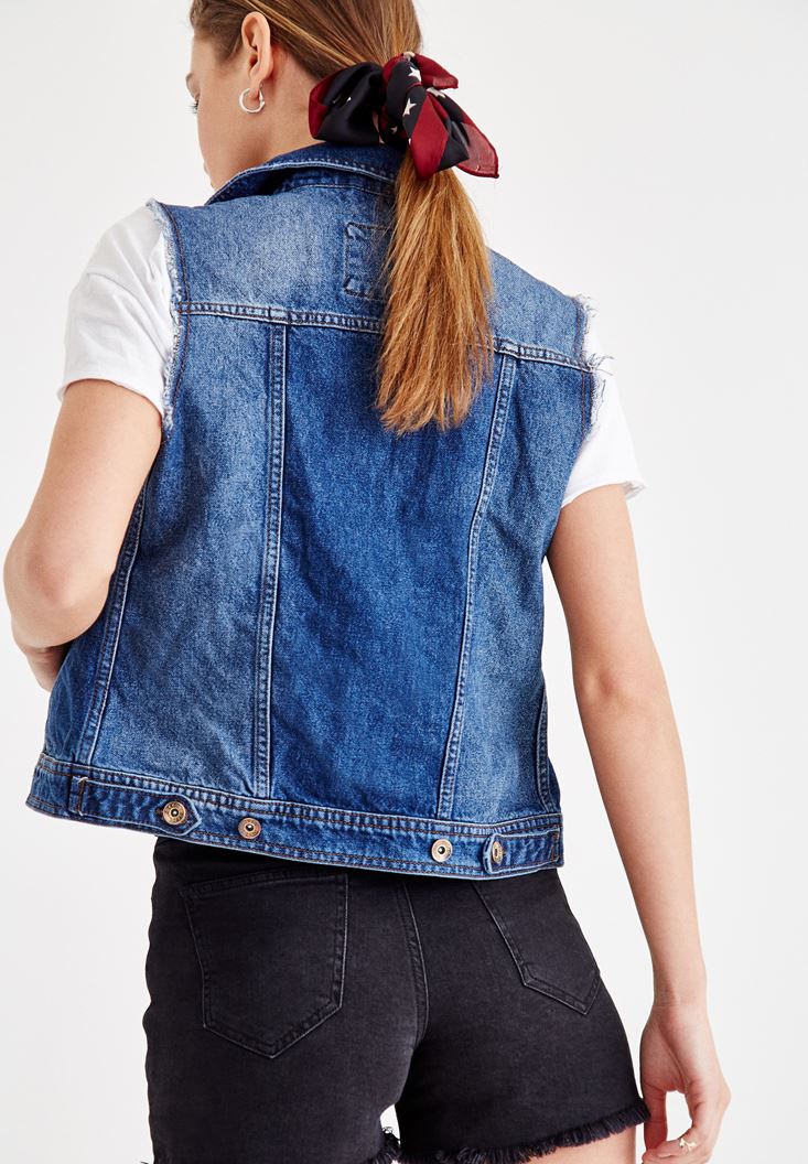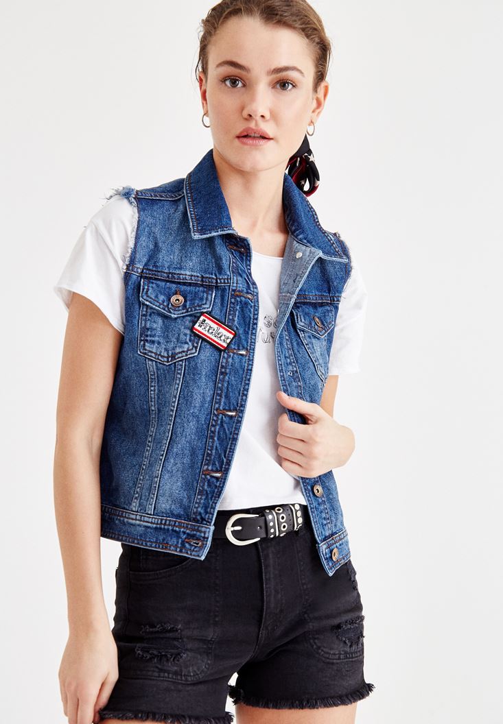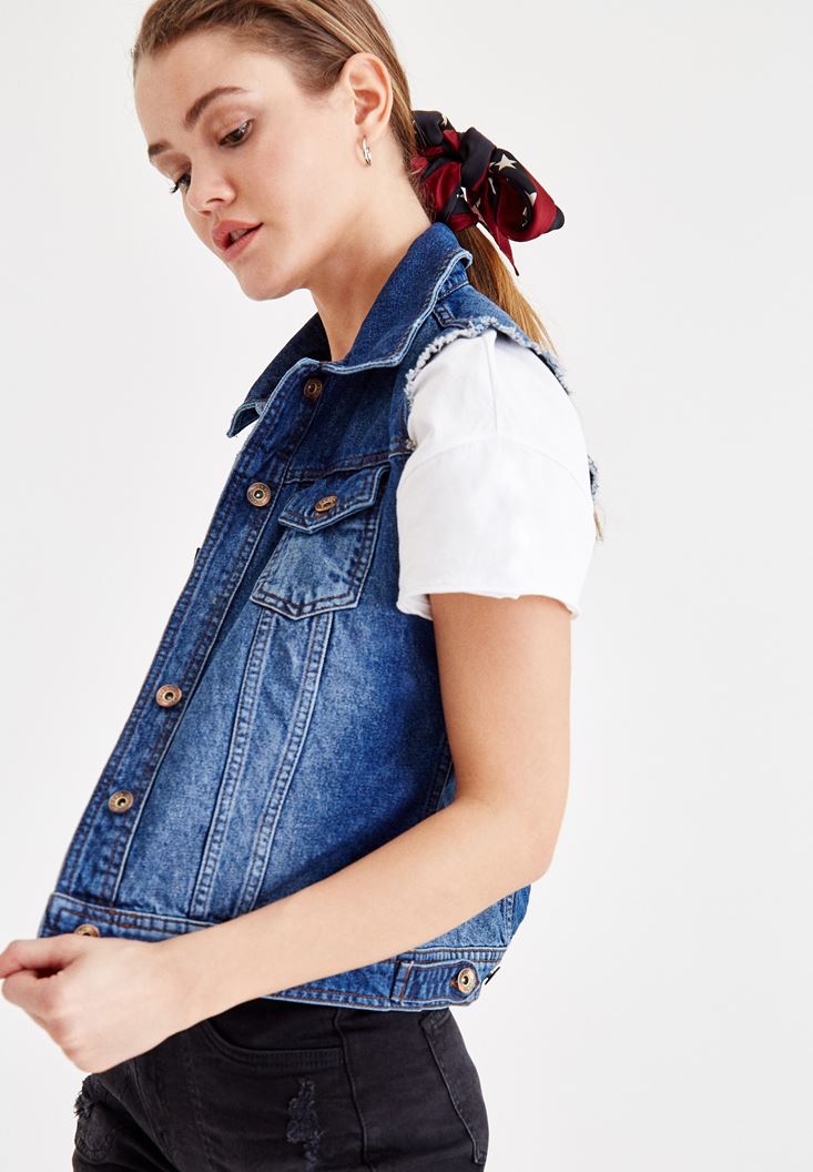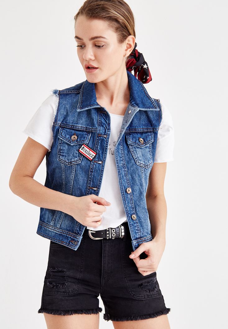 Günlük ve spor kombinlerde tarzini ön plana çikarmak isteyenlerin tercihi olan denim yelek sik tasarimi ve detaylari ile dikkat çekiyor. Kalkik yakali yelek modeli kisa boyu ile basic bluz modelleri ile birlikte hos bir görünüm elde etmenize yardimci oluyor. Denim yelek modelinin kol kesiminde yer alan yirtik detaylar tasarimin çok daha hareketli ve sik gözükmesine yardimci oluyor. Pamuk dokusu ile hem yumusak bir kullanim hissi sunan hem de sicak tutan denim yelek modeli spor kombinlerin vazgeçilmez parçalari arasinda yer aliyor. OXXO ilhamini yansittigi enerjik ve dinamik tasarimlar yaparken özellikle spor sikligi ön plana çikaran denim parçalari dikkat çekici detaylar ile begeninize sunuyor.