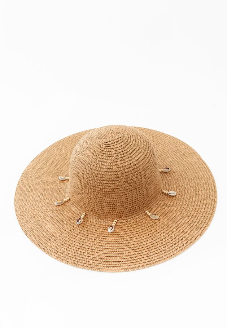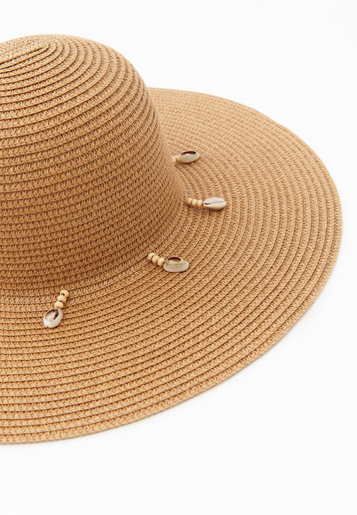 Kahverengi Deniz Kabuğu Detaylı Hasır Şapka