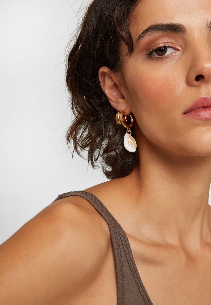 Altın Deniz Kabuklu 2'li Küpe