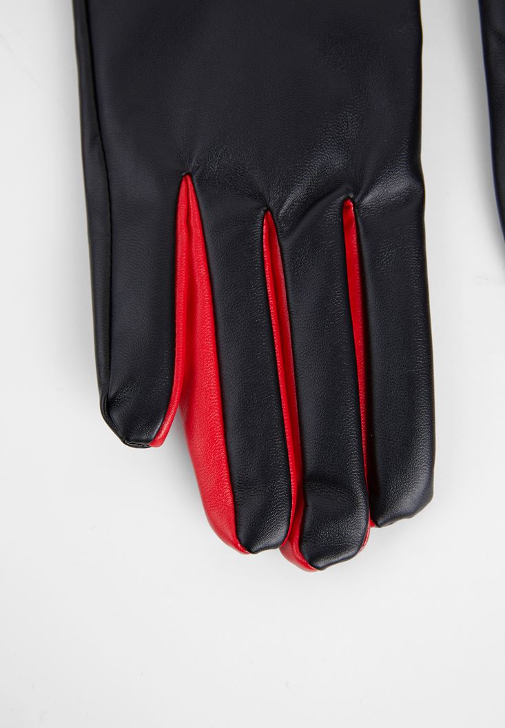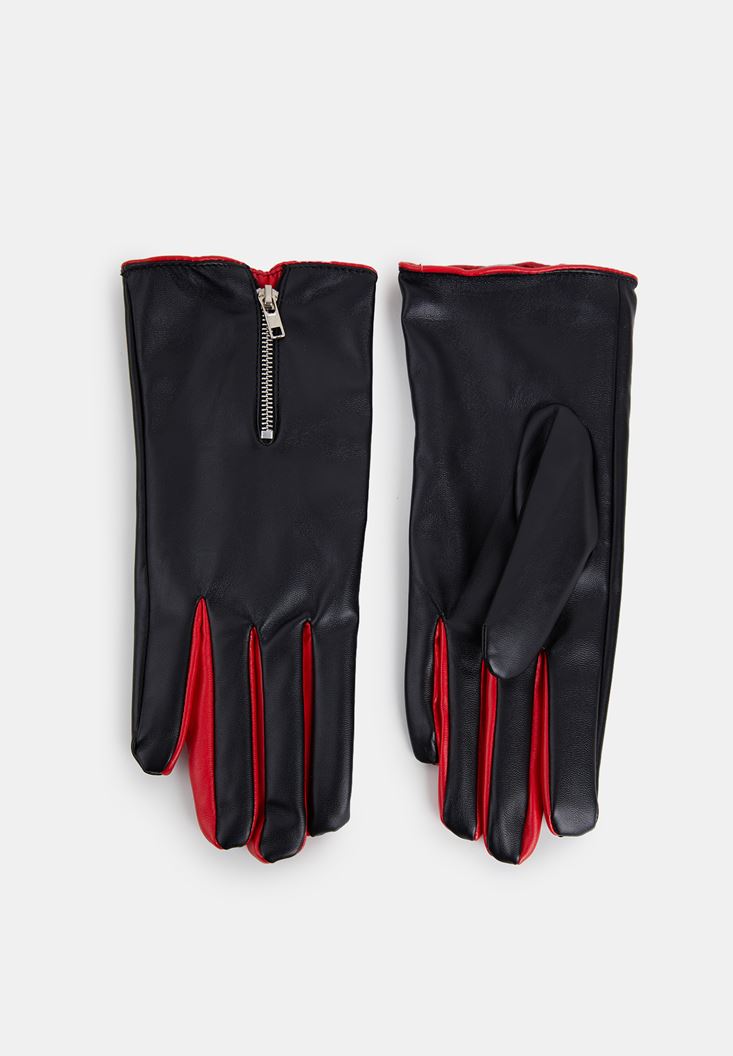 Siyah Deri Fermuar Detaylı Eldiven
