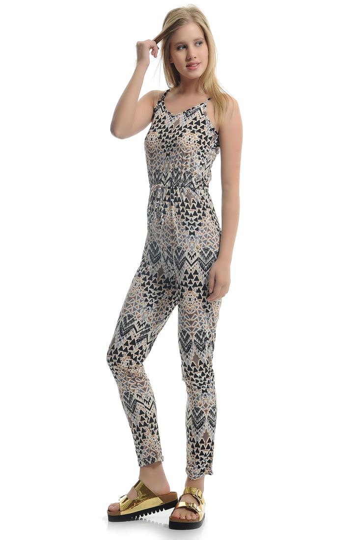 • Bayan Çok Renkli Desenli Askılı Tulum