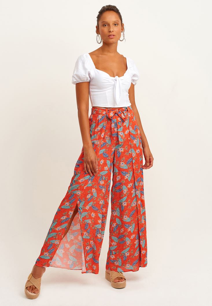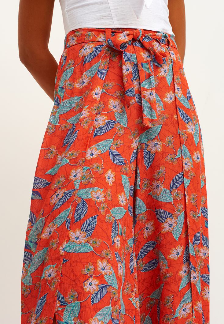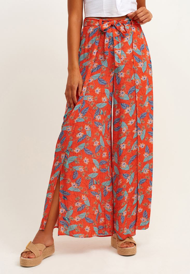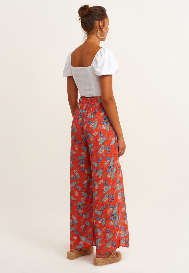 Çok Renkli Desenli Bol Paça Pantolon