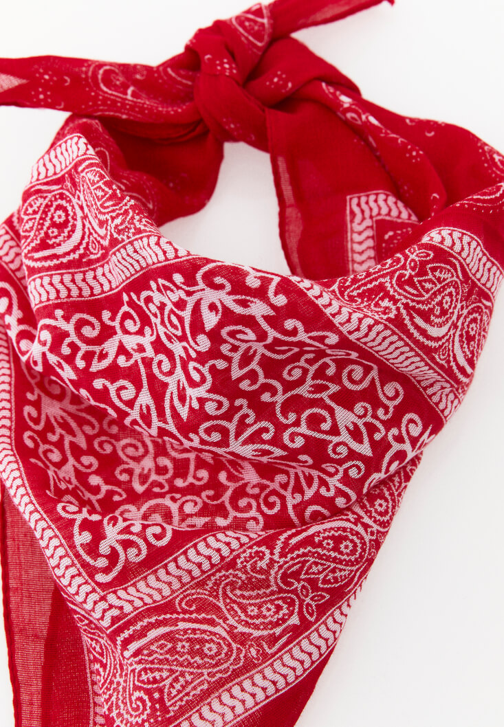 • Bayan Kırmızı Desenli Fular
