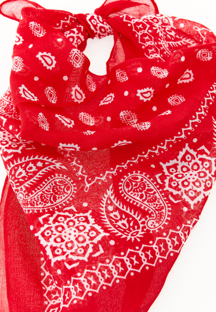 • Bayan Kırmızı Desenli Fular