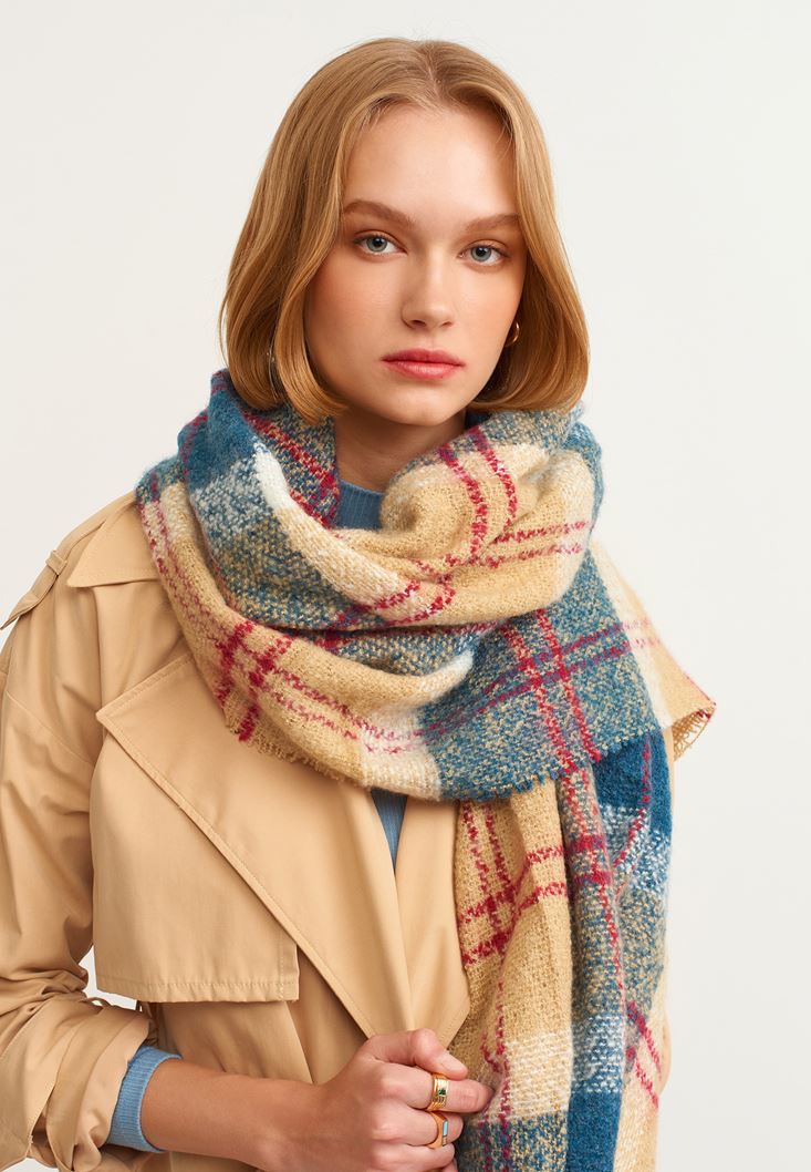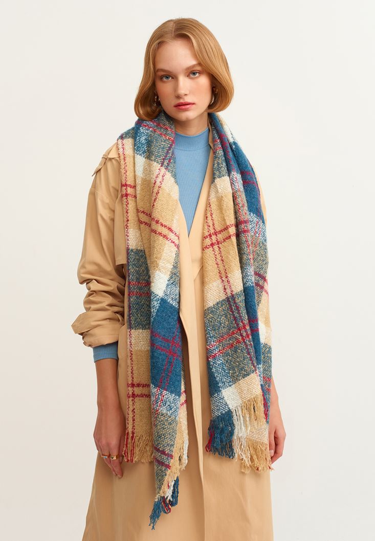 • Bayan Çok Renkli Desenli Kalın Şal