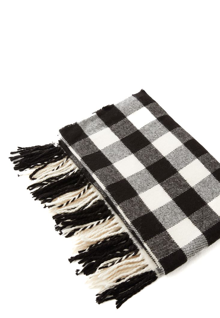 • Bayan Siyah Desenli Kalın Şal