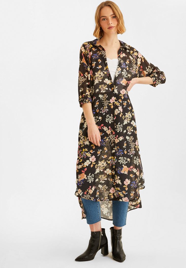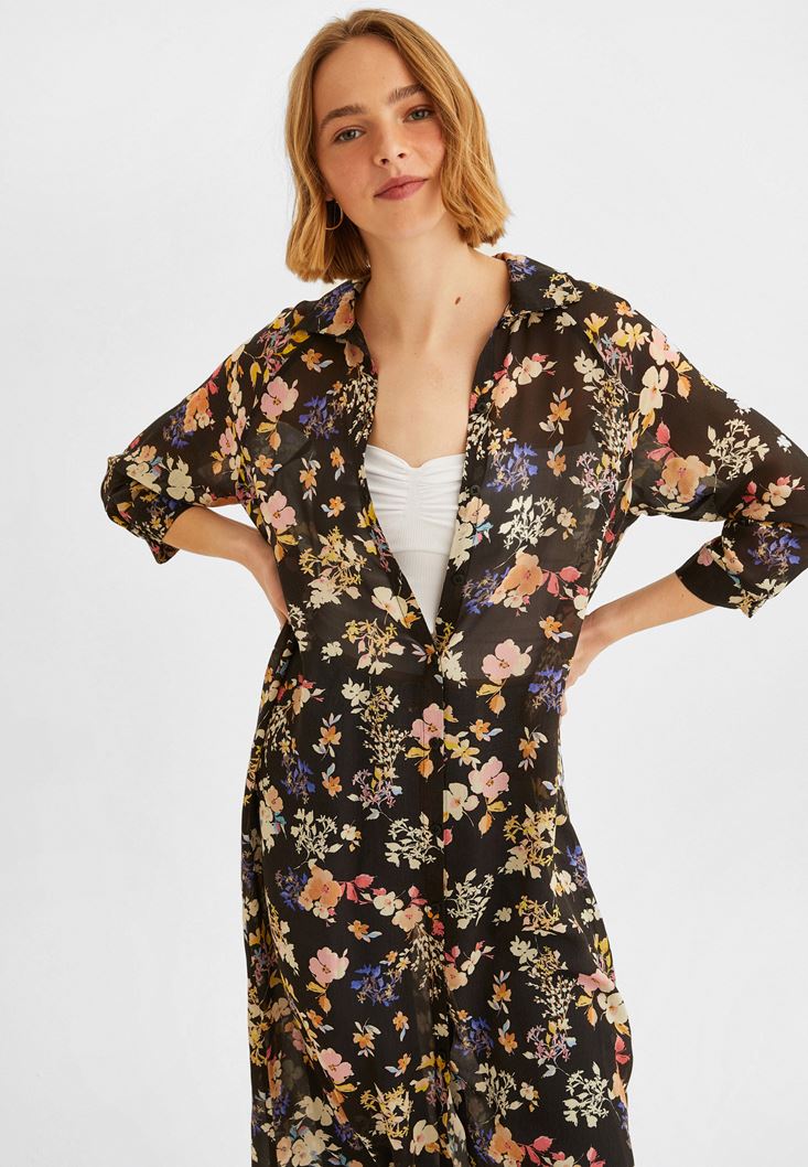Desenli Gömlek Elbise modeli. Modal ve viskon içerik sayesinde doğallığı yakalamak mümkün. Çiçek desenlerinin büyüsüne kapılmaya hazırsın. Baharı çağrıştıran hoş desenli gömlek elbise modeli, mükemmel görünüm için fazlasıyla uygun. Uzun günler için tercih edebileceğin bu parçayı askılı çantalarla ve topuklu terliklerle buluşturmak hoş bir görüntü yaratır!