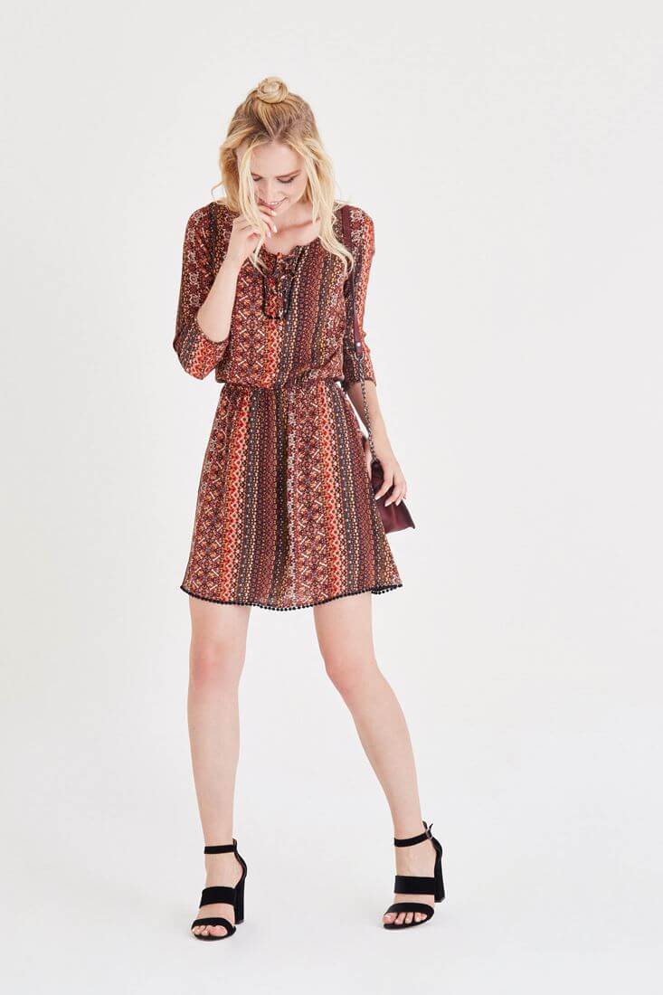 Sonbaharin belki de en sevilen modellerinden biri fakir kollu kisa elbiseler. Toprak tonlari ve mükemmel deseniyle çok sevecegin Desenli Kisa Elbise dolabinin vazgeçilmezi olacak. Acil kombin yapmak gerektiginde imdadina yetiserek tek parçada sik olmani saglayacak elbise modelleri OXXO'da!