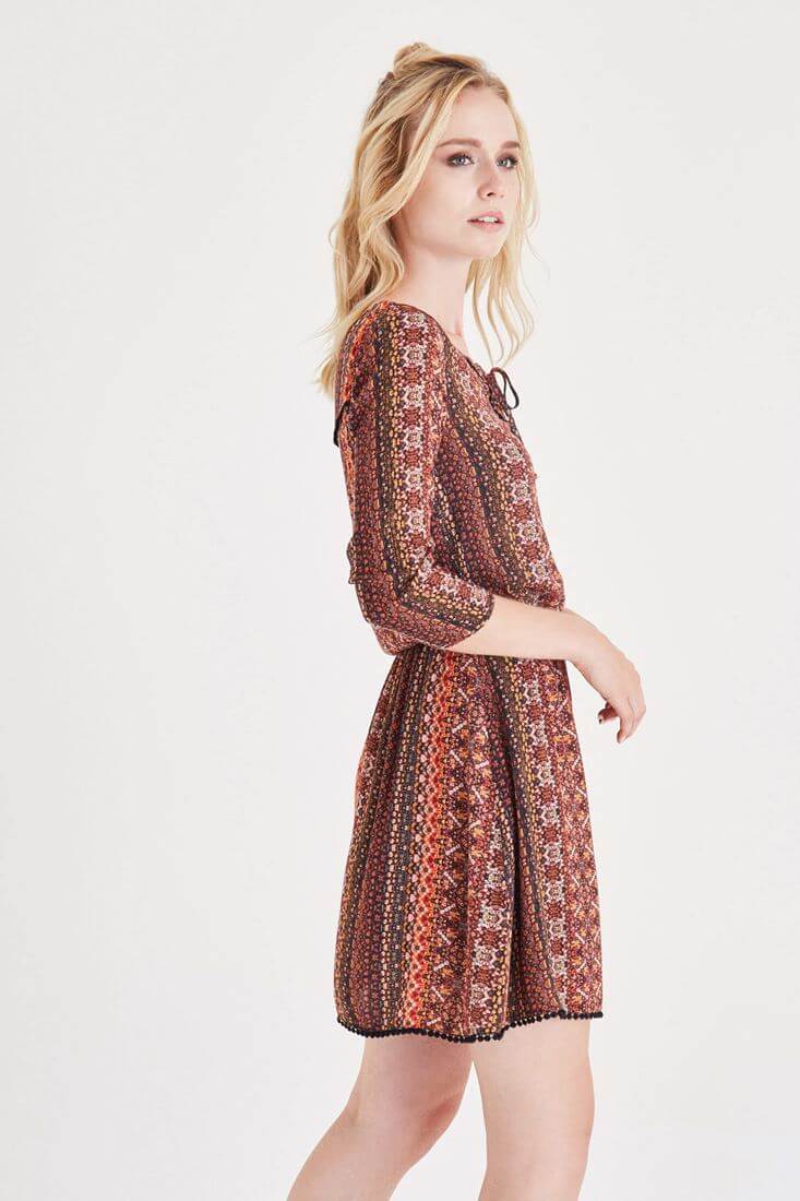 • Bayan Çok Renkli Desenli Kısa Elbise