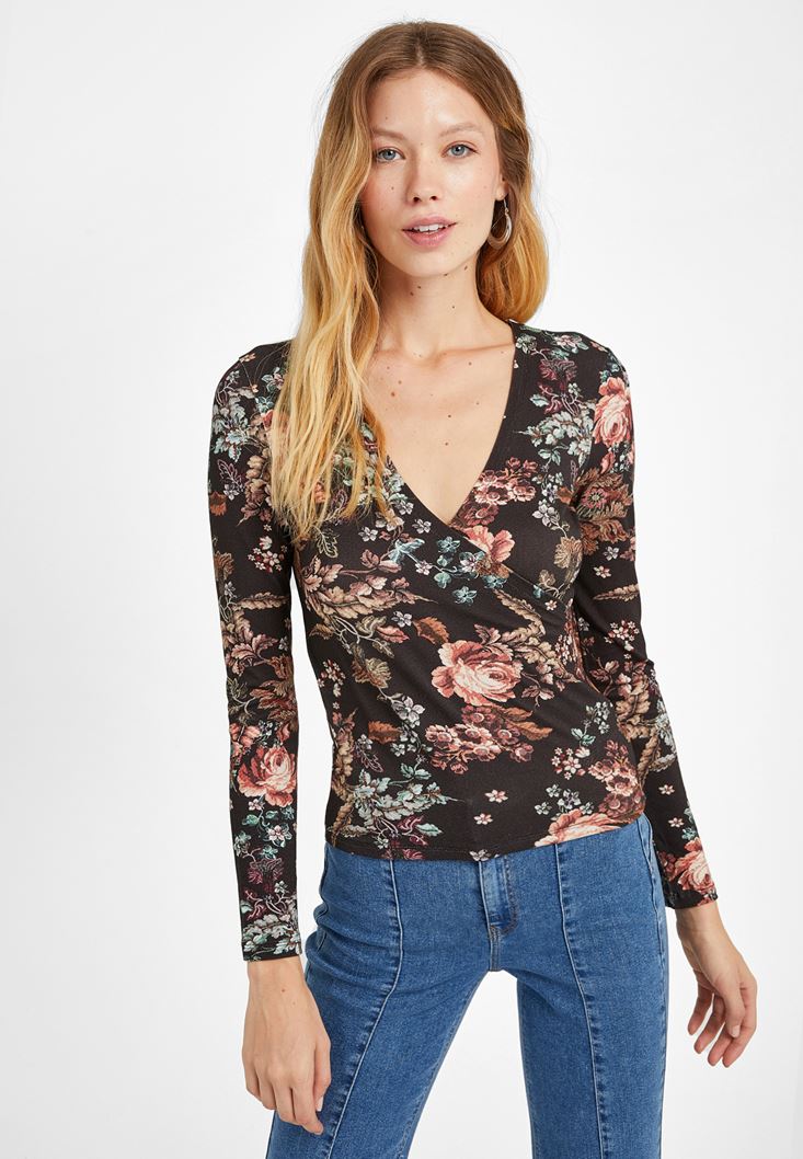 • Bayan Çok Renkli Desenli Kruvaze Bluz