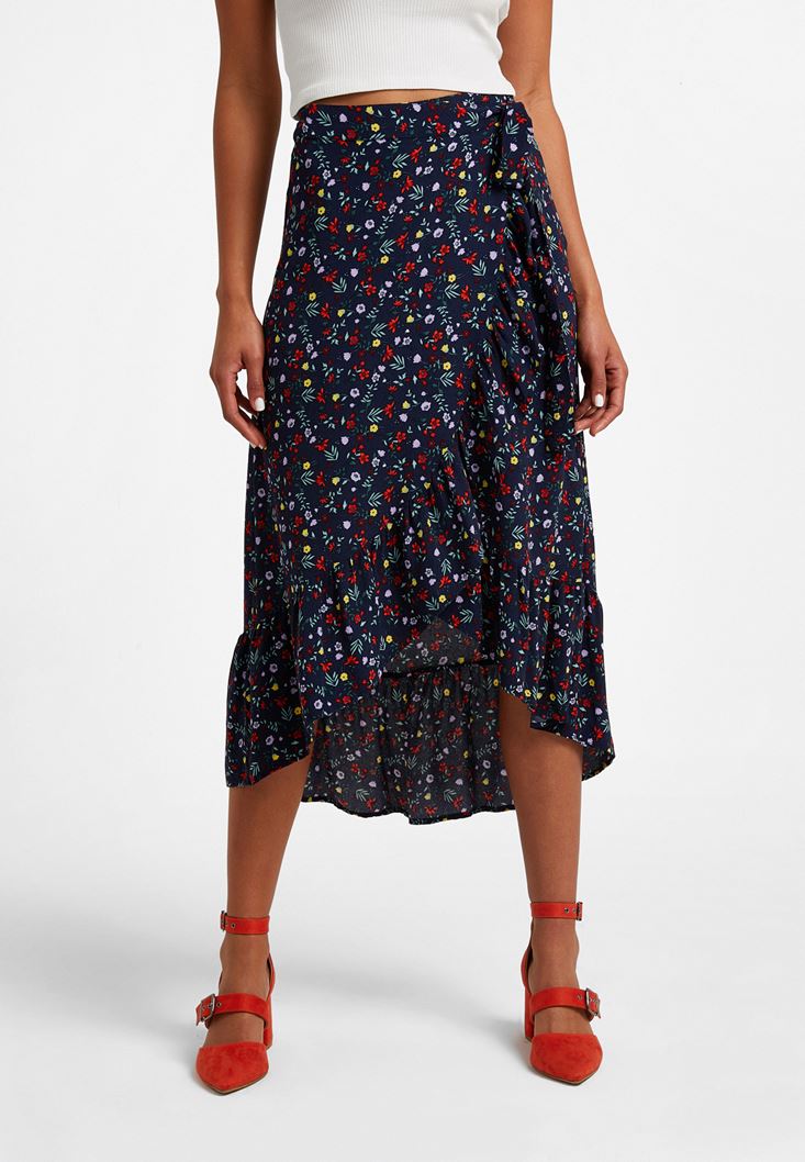 Oxxo Desenli Kruvaze Midi Etek 2095123405
