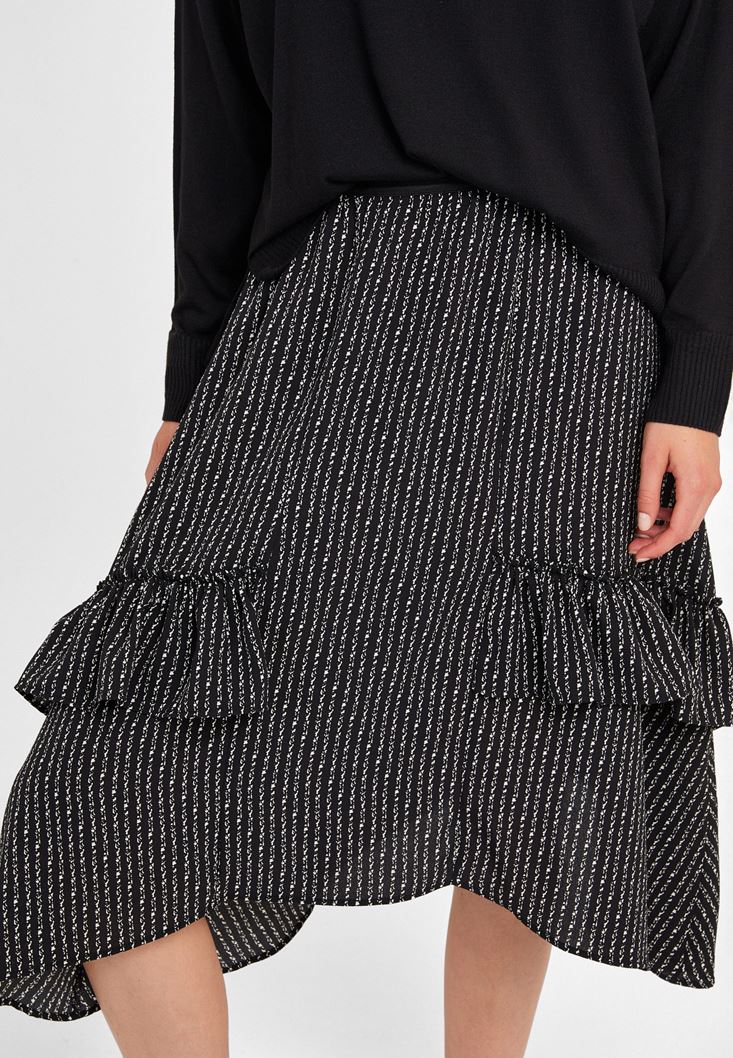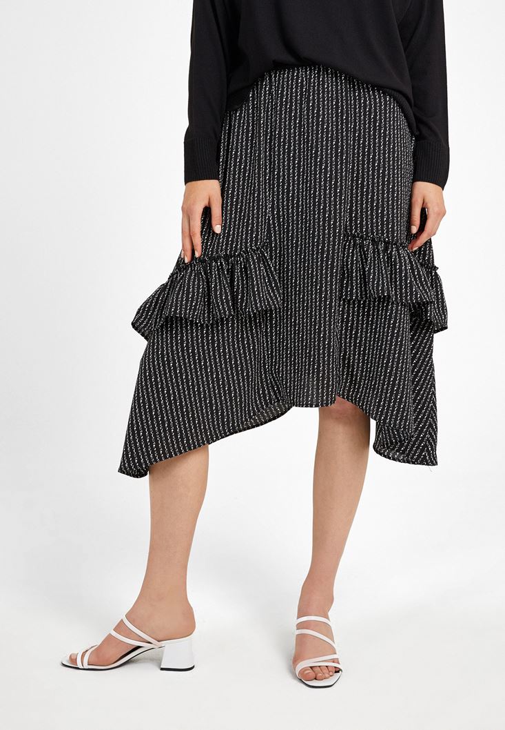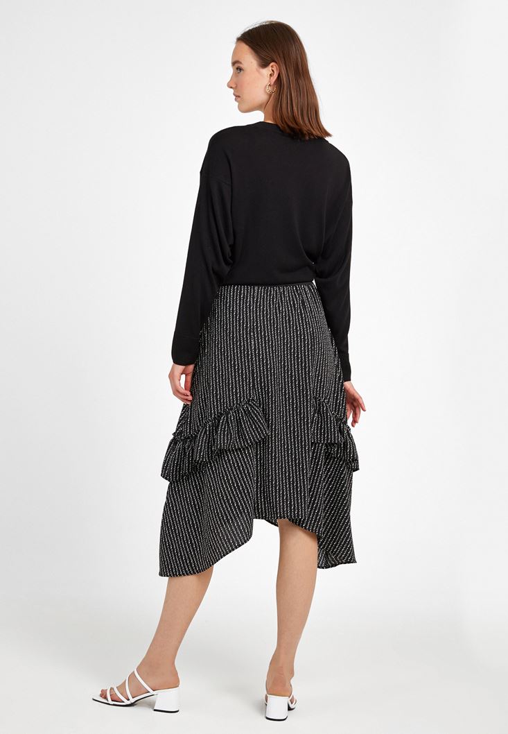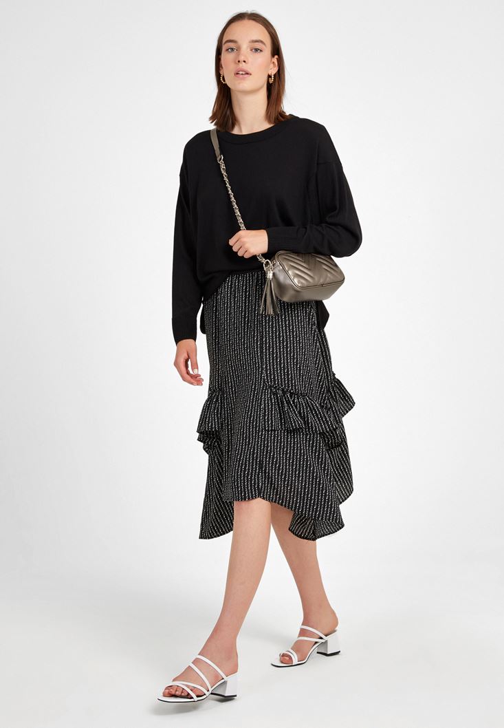 Desenli Midi Etek modeli, hafif kumaşı ve hareketli görünümüyle enerjik detayları sizlerle buluşturuyor. kadın etek modeli; iki yanında bulunan fırfır detayının yanında, asimetrik kesimiyle de oldukça dikkat çekiyor. Desenli etek modeli, midi boy tasarımı ile sizleri zariflikle buluştururken, şık bir tarz elde etmeniz için Oxxo farkıyla karşınıza çıkıyor. kadın bluz modelleri ve topuklu ayakkabı modelleri ile yapacağınız göz alıcı kombinleri, midi etek tasarımıyla taçlandırabilirsiniz. Triko kazak modelleri ile eşsiz bir uyum yakalamak için iyi bir seçenek olan desenli etek modeli sayesinde, stilinize dinamik bir görünüm katabilirsiniz. Oxxo'nun daima şıklığı ön planda tutarak sizlere sunduğu kadın etek modelleri ile sezon trendlerinin yakın takipçisi olabilirsiniz.