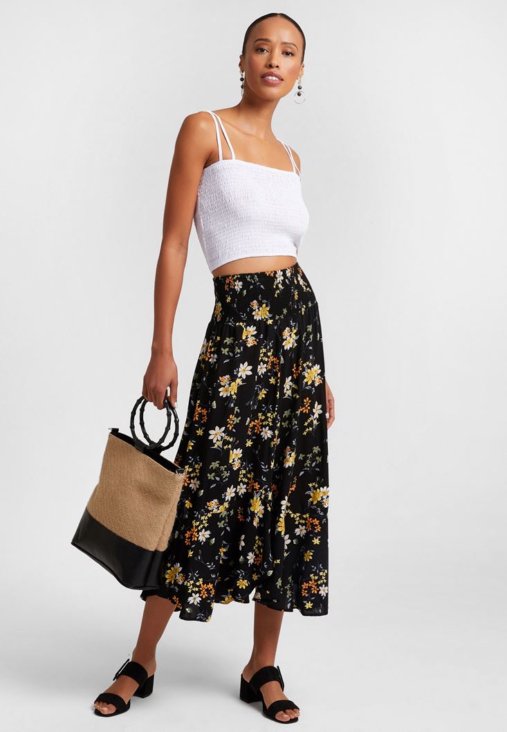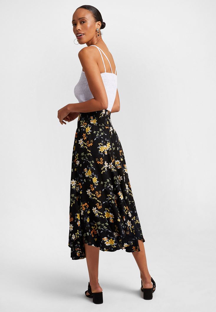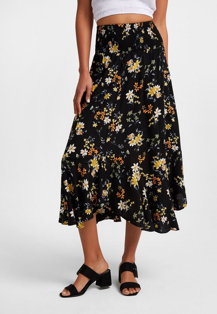Desenli Midi Etek modeli, viskon içerikli dokusu ve dökümlü duruşu ile yeni sezona hareket katıyor. Midi etek modeli, çiçekli desenlere sahip olan kumaşı ve asimetrik kesimi ile Oxxo'da sizlerle buluşuyor. Belindeki büzgü detayıyla da ön plana çıkan midi boy etek modeli, tarzınızla fark yaratabilmeniz için ideal bir seçenek oluyor. Crop atletlerle veya bluzlarla rahatlıkla kullanabileceğiniz midi etek modelini hem özel davetlerde hem de günlük yaşantınızda tercih edebilirsiniz. Midi boy etek modeli ile düz veya topuklu ayakkabıları bir araya getirerek kombinlerinizi tamamlayabilirsiniz. Oxxo'nun romantik desenlerle ve canlı renklerle sizlere sunduğu midi boy etek modelleri ile tarzınıza hareket katabilirsiniz.